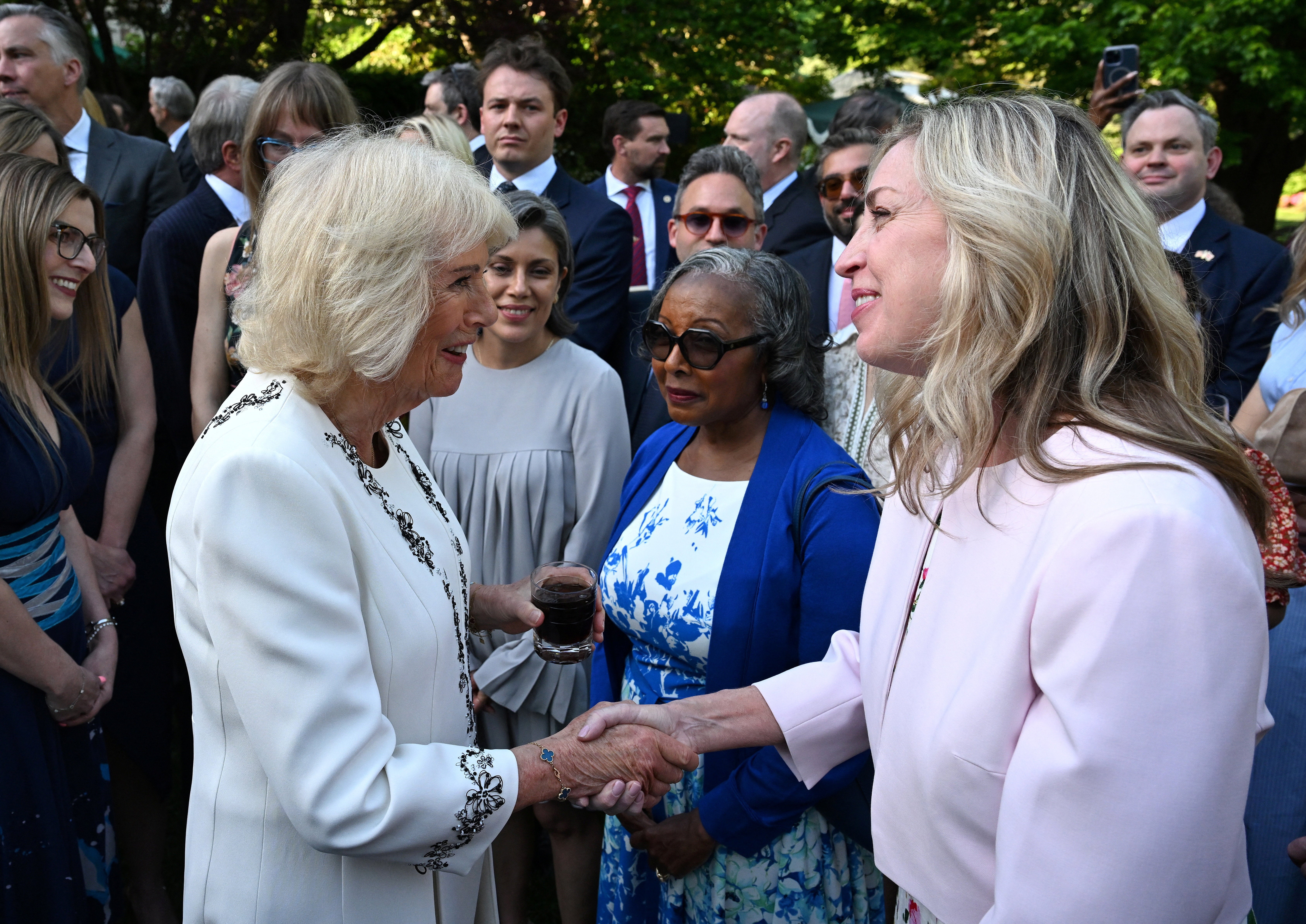 Michelle DeLaune, chief executive of the National Centre for Missing and Exploited Children, praised the Queen as “wonderful” for “raising awareness” and getting “dialogue going” as they spoke at an open-air soiree in the gardens of the official residence of Sir Christian Turner, the UK’s ambassador to the US.