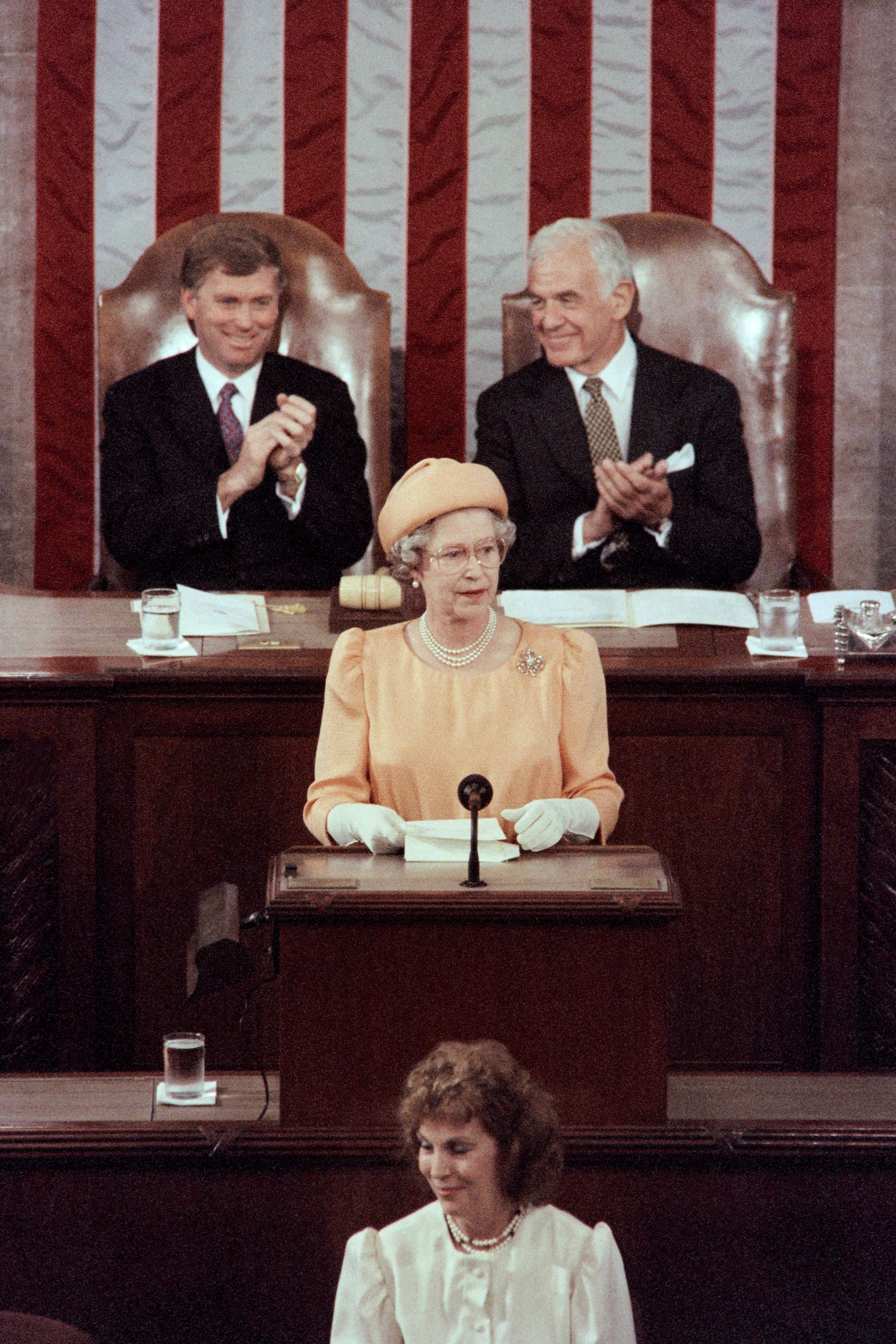 Pictured: Queen Elizabeth II's historic address to congress in 1991