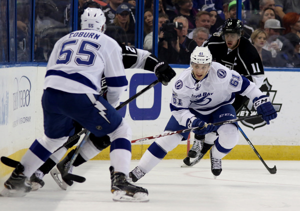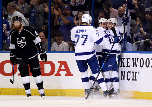 Two of those second-period goals came from Kucherov, whose scores were sandwiched around one from Gabriel Dumont. Jonathan Drouin opened the scoring in the first period and Braydon Coburn's third-period goal off a rebound accounted for the final score, and left the Kings following Quick to the bus searching for answers.