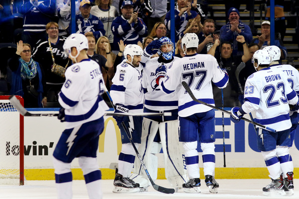 Tampa Bay's first four goals all came on odd-man rushes, including a breakaway in which Nikita Kucherov, freed by a long pass from Vladislav Namestnikov, skated the final half of the rink alone before beating goalie Peter Budaj with a wrist shot to the stick side.