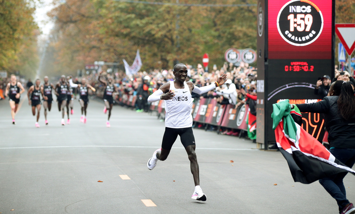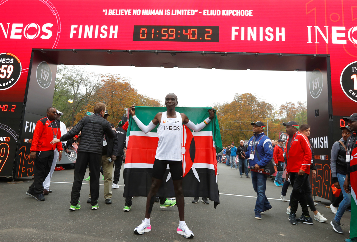 Kenyan Kipchoge made athletics history in Vienna on Saturday when he became the first person to run a marathon in under two hours, clocking one hour 59.40 seconds.