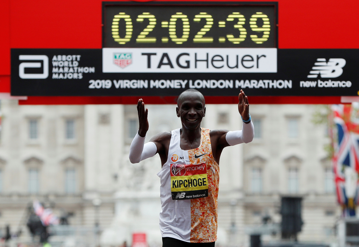 LONDON (Reuters) - Eliud Kipchoge ran the second fastest marathon time ever to clinch his fourth London Marathon title on Sunday, ahead of Britain's Mo Farah who struggled in fifth, while Kenya's Brigid Kosgei impressed to win the women's race.