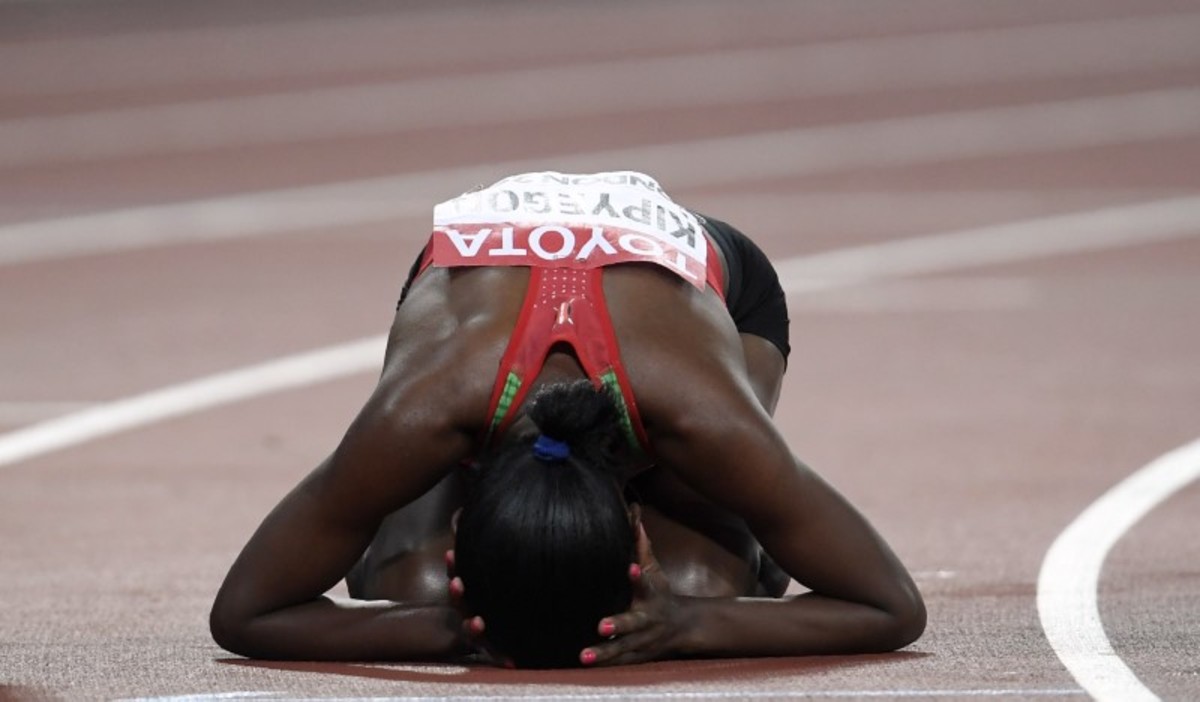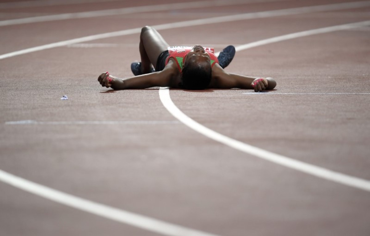 But it was the Kenyan who had the superior staying power as she drove through the line for a brilliant win to follow her 2016 triumph at the Olympics in Rio.
