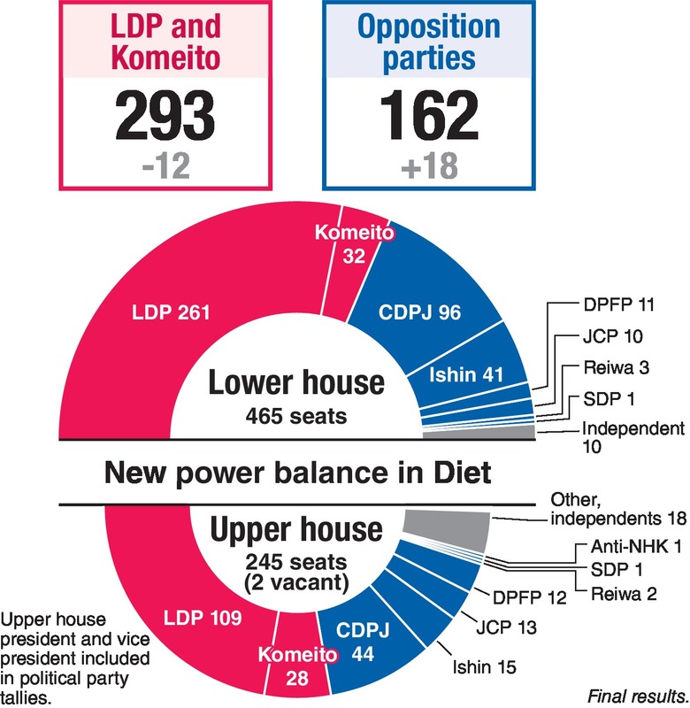 The controlling majority that the LDP held on to in the election allows the party to chair all 17 standing committees in the lower house and to comprise the majority of each committee's membership.