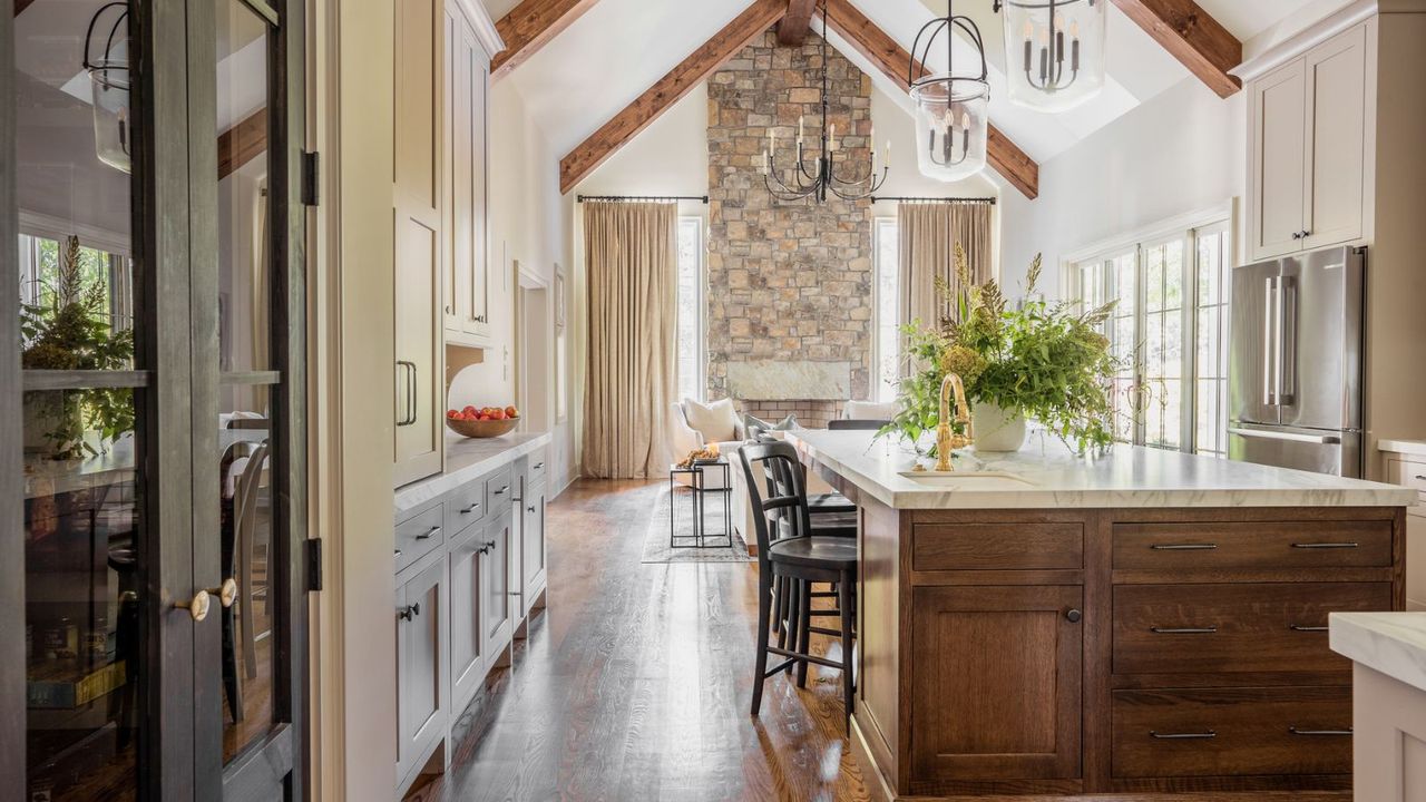 Open storage can be controversial, but mixed storage styles on a kitchen island can not only add a variety of space for essentials and kitchenware, but also break up the bulkiness of the island, creating a softer, more lived-in look.