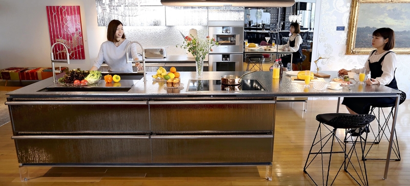 Cutting-edge kitchens were introduced at the international furniture exhibition "Salone del Mobile. Milano" held in Italy in April. Italian brand Boffi unveiled modular kitchen elements that can be freely combined, including sinks, induction heating cookers, counters and dining tables. The heights of the counter and dining table differ.