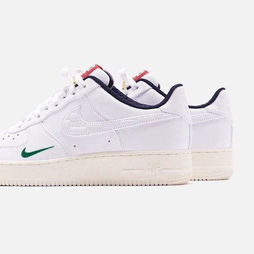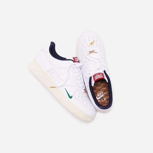 But god, these are so bad. The unsightly KITH logo adorning it not once, but over and over in a tile pattern on the Swoosh and insole. The gaudy gold accents. The ability to have an overload of colors on a shoe that's predominantly white. The only endearing detail is the tiny green Swoosh, but it's overwhelmed by the crowded field that is this shoe. I never thought I'd see an AF1 with a cream sole that's this tasteless.
