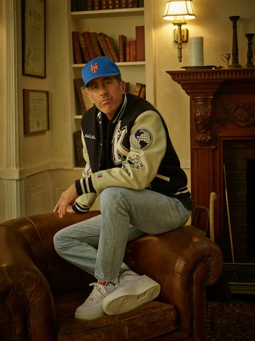 In photos captured by acclaimed photographer Mark Seliger, Seinfeld can be seen sporting floral fleeces, varsity jackets, and Kith-branded sweatshirts. Navy, maroon, and mustard yellow striped styles can be seen throughout the campaign as the comedian, a well-known Mets fan, also reps Kith and Clarks’s Wallabee Mets shoes. But despite the youthfulness of the pieces, they seem to age Seinfeld — and online, fans are insisting the actor looks unhappy in the outfits. “Looks like Jerry is being held hostage,” says meme page Nolita Dirtbag on Instagram.