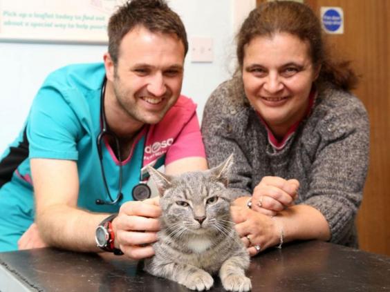 The nine-month-old cat was taken to Nottingham Pet Hospital on the verge of collapse and needed IV fluids to treat shock.