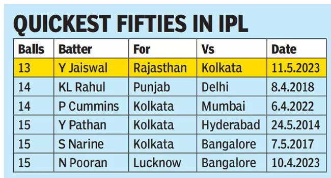 <p>Jaiswal came close to equaling Yuvraj Singh’s IPL record of a 12-ball half-century before flicking Shardul Thakur to deep square leg for a single to complete his fifty off 13 balls.<br /></p>PTI10/10:NOT MY DAY