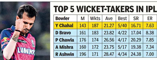 <p>Chahal grabbed 4-25 to surpass Dwayne Bravo’s record of 183 and stretch his wickets tally for the season to 21.<br /></p>AP5/10:SPECTACULAR SHOW