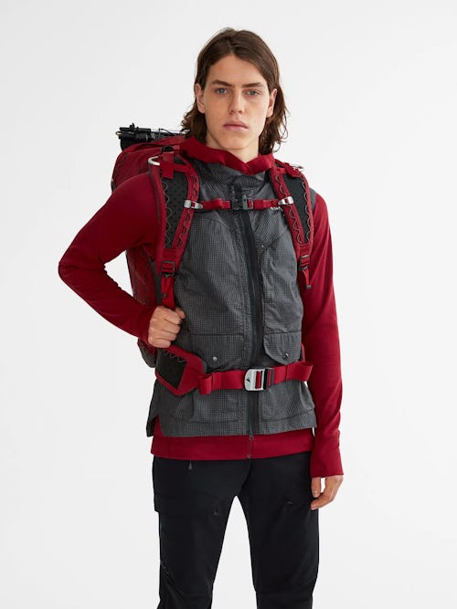 Because synthetic materials traditionally used in gorpcore may not be the most sustainable or eco-friendly, Klättermusen’s challenge was finding natural materials that can mimic their flexibility and durability. Natural fabrics don’t stretch as well as polyester and polyamide, and natural yarns tend to be heavier and thicker than synthetics. The result is the organic Katla cotton, found in a region of Asia called “Sky Mountain,” that can be threaded into long pieces but still provide a lightweight finish.