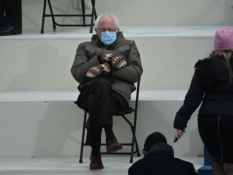 “I wrote the pattern to knit a pair for myself, sort of as a joke, but decided to post it as I love the community that Ravelry has created for sharing ideas and excitement about knitting/crocheting around the world,” Harlan wrote in an email. “It has been great fun to see all the comments from folks who are excited to be able to knit a pair for themselves!” (The authentic Sanders mittens were made by Jen Ellis, a Vermont schoolteacher, who repurposed wool sweaters and then lined the mittens with fleece made from recycled plastic bottles.)