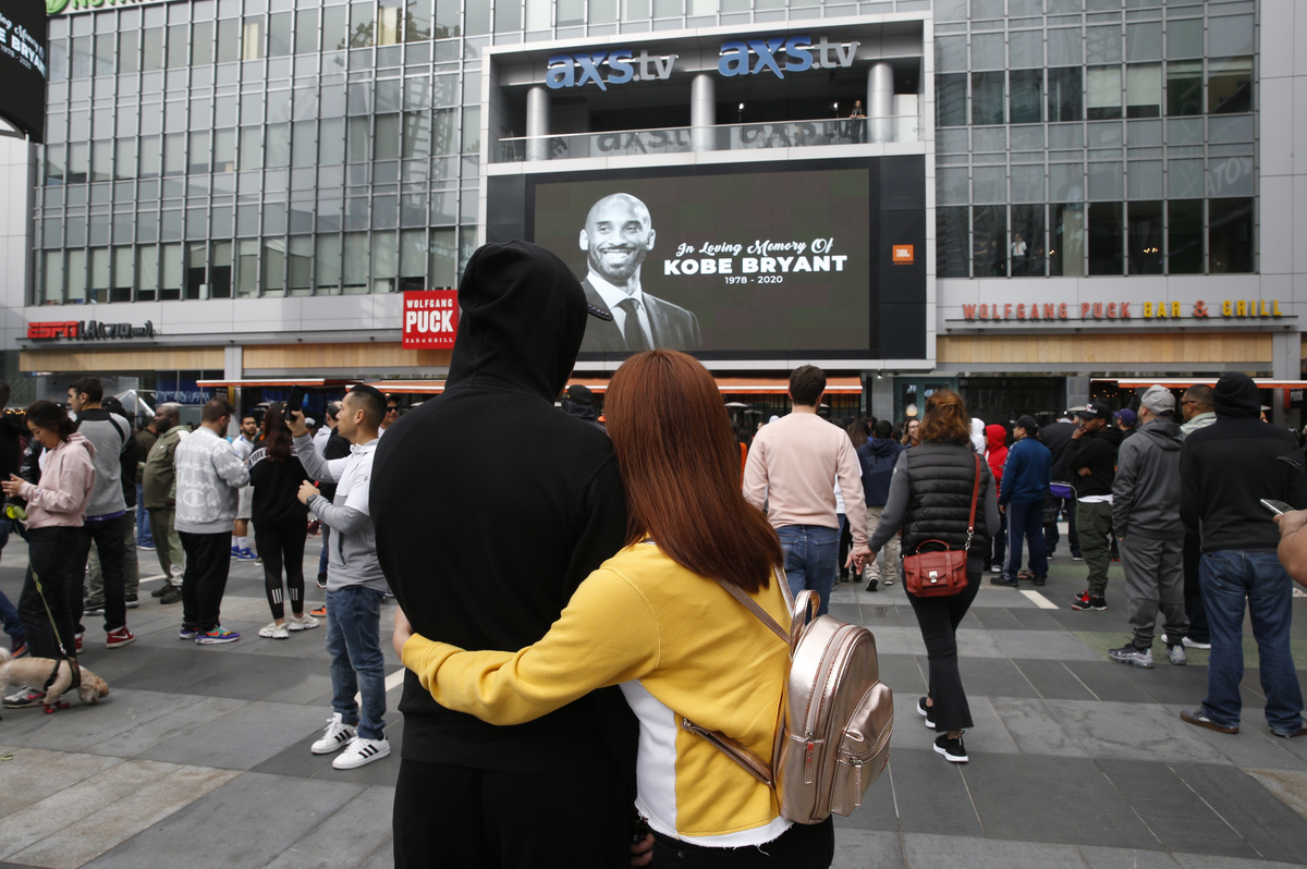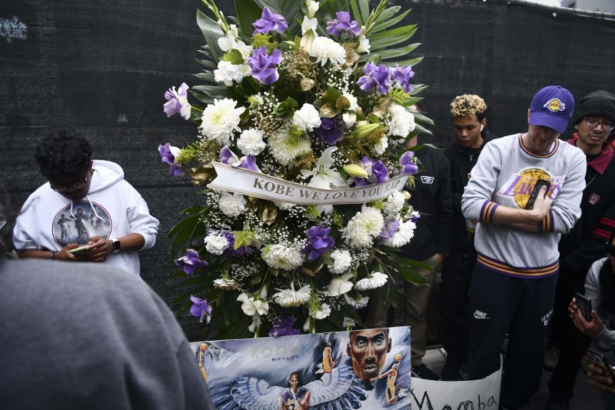 Jan 26, 2020; Los Angeles, CA, USA; Fans mourn the loss of NBA legend Kobe Bryant outside of the Staples Center in Los Angeles. Mandatory Credit: Harrison Hill-USA TODAYMourners look at an image of Kobe Bryant on a large screen outside the Staples Center after the retired Los Angeles Lakers basketball star was killed in a helicopter crash, in Los Angeles, California, U.S. January 26, 2020. REUTERS/Monica AlmeidaFILE PHOTO: Lakers guard Kobe Bryant smiles during an interview at NBA media day for the Los Angeles Lakers basketball team in Los Angeles October 1, 2012. REUTERS/Lucy Nicholson/File PhotoMourners arrive at a makeshift shrine at Staples Center after retired Los Angeles Lakers basketball star Kobe Bryant was killed in a helicopter crash, in Los Angeles, California, U.S. January 26, 2020. REUTERS/Monica AlmeidaMourners embrace near an image of Kobe Bryant shown on a large screen outside the Staples Center after the retired Los Angeles Lakers basketball star was killed in a helicopter crash, in Los Angeles, California, U.S. January 26, 2020.Jan 26, 2020; Los Angeles, CA, USA; Fans mourn the loss of NBA legend Kobe Bryant outside of the Staples Center in Los Angeles. Mandatory Credit: Harrison Hill-USA TODAYJan 26, 2020; Los Angeles, CA, USA; Fans mourn the loss of NBA legend Kobe Bryant outside of the Staples Center in Los Angeles. Mandatory Credit: Harrison Hill-USA TODAYFlowers, photos and messages are placed at a makeshift memorial for former NBA player Kobe Bryant outside of the Mamba Sports Academy in Thousand Oaks, California, U.S., January 26, 2020. REUTERS/Ringo ChiuA fan places flowers at a makeshift memorial for former NBA player Kobe Bryant outside of the Mamba Sports Academy in Thousand Oaks, California, U.S., January 26, 2020. REUTERS/Ringo ChiuFrankarlos Casques, 6, and sister Lyla, 8, react at makeshift memorial for former NBA player Kobe Bryant outside of the Mamba Sports Academy in Thousand Oaks, California, U.S., January 26, 2020. REUTERS/Ringo Chiu A young fan places a hat at a makeshift memorial for former NBA player Kobe Bryant outside of the Mamba Sports Academy in Thousand Oaks, California, U.S., January 26, 2020. REUTERS/Ringo ChiuJan 26, 2020; Calabasas, California, USA; Life long Kobe Bryant fans Amanda and Philip Gordon of the San Fernando Valley, embrace at the at the scene near the hillside where the helicopter carrying Kobe Bryant crashed in Calabasas, CA. this morning. Mandatory Credit: Jayne Kamin-Oncea-USA TODAY SportsSmoke rises from the scene of a helicopter crash that reportedly killed retired basketball star Kobe Bryant in Calabasas, California, U.S., January 26, 2020. REUTERS/Ringo Chiu TPX IMAGES OF THE DAYSpectators gather near the scene of a helicopter crash that reportedly killed retired basketball star Kobe Bryant in Calabasas, California, U.S., January 26, 2020. REUTERS/Kyle GrillotSpectators react near the scene of a helicopter crash that reportedly killed retired basketball star Kobe Bryant in Calabasas, California, U.S., January 26, 2020. REUTERS/Kyle GrillotSpectators react to the scene of a helicopter crash that reportedly killed retired basketball star Kobe Bryant in Calabasas, California, U.S., January 26, 2020. REUTERS/Kyle GrillotLA county firefighters work at the scene of a helicopter crash that reportedly killed Kobe Bryant in Calabasas, California, U.S. January 26, 2020. REUTERS/Gene BlevinsLA county firefighters on the scene of a helicopter crash that reportedly killed Kobe Bryant in Calabasas, California, U.S., January 26, 2020. REUTERS/Gene BlevinsLA county firefighters work at the scene of a helicopter crash that reportedly killed Kobe Bryant in Calabasas, California, U.S. January 26, 2020. REUTERS/Gene Blevins
