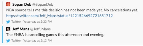 In the wake of these false reports, Twitter users started directing their ire at the media — and rightly so, in some cases. Several news organizations apparently ran with stories before confirming the details. But there became a much bigger problem on Twitter: verified users who ran with unconfirmed details. Claims that Rick Fox was on board the plane were shared by high-profile people like former NFL cornerback Byron Westbrook, YouTuber Alonzo Lerone, eSports gamer Mendo, radio personality Shar Jossell and a number of others who sport the blue checkmark badge on Twitter. Similarly, the report that the NBA was canceling its games appears to have originated from Jeff Mans, the owner of several fantasy sports operations and a radio talk show host. He would go on to delete his original tweet and correct his own reporting, but word spread — in part because people trusted him as a source of information on the matter.
