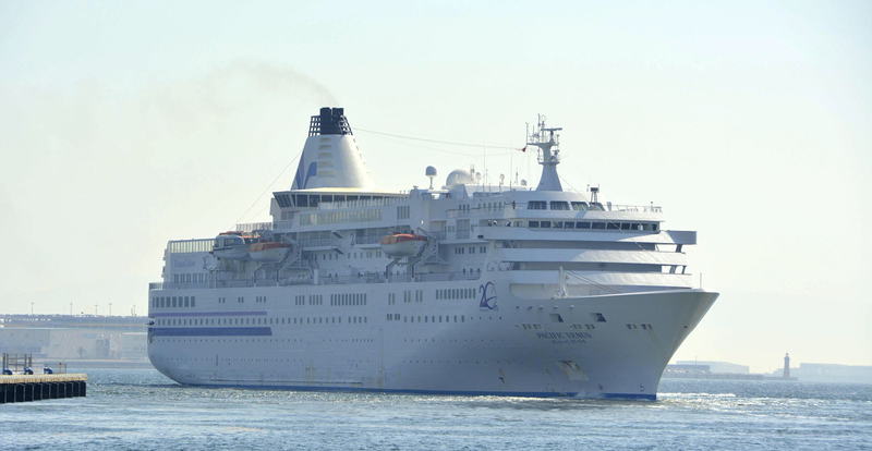 On a return trip following stops at several places, including in the Philippines, the vessel left for Yokohama after unloading passengers at Kobe. The Pacific Venus has become a familiar sight at the port.