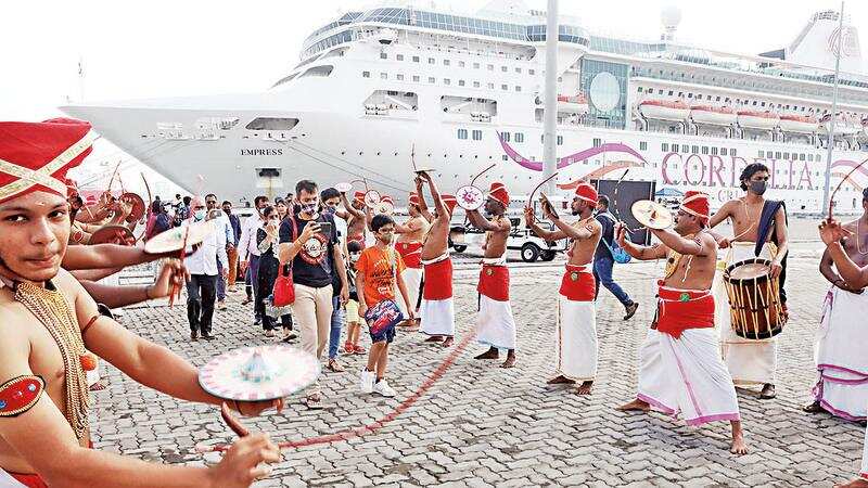 The state tourism department accorded a warm welcome to the guests with a performance by Velakali dancers and women in traditional Kerala kasavu saris greeting them. The Cochin Port wore a festive look as Velakali performers holding sword and shield swayed with graceful vigour in two rows. The guests were received by Kerala tourism joint director K Radhakrishnan and deputy director T G Abhilash besides top officials with Cochin Port.