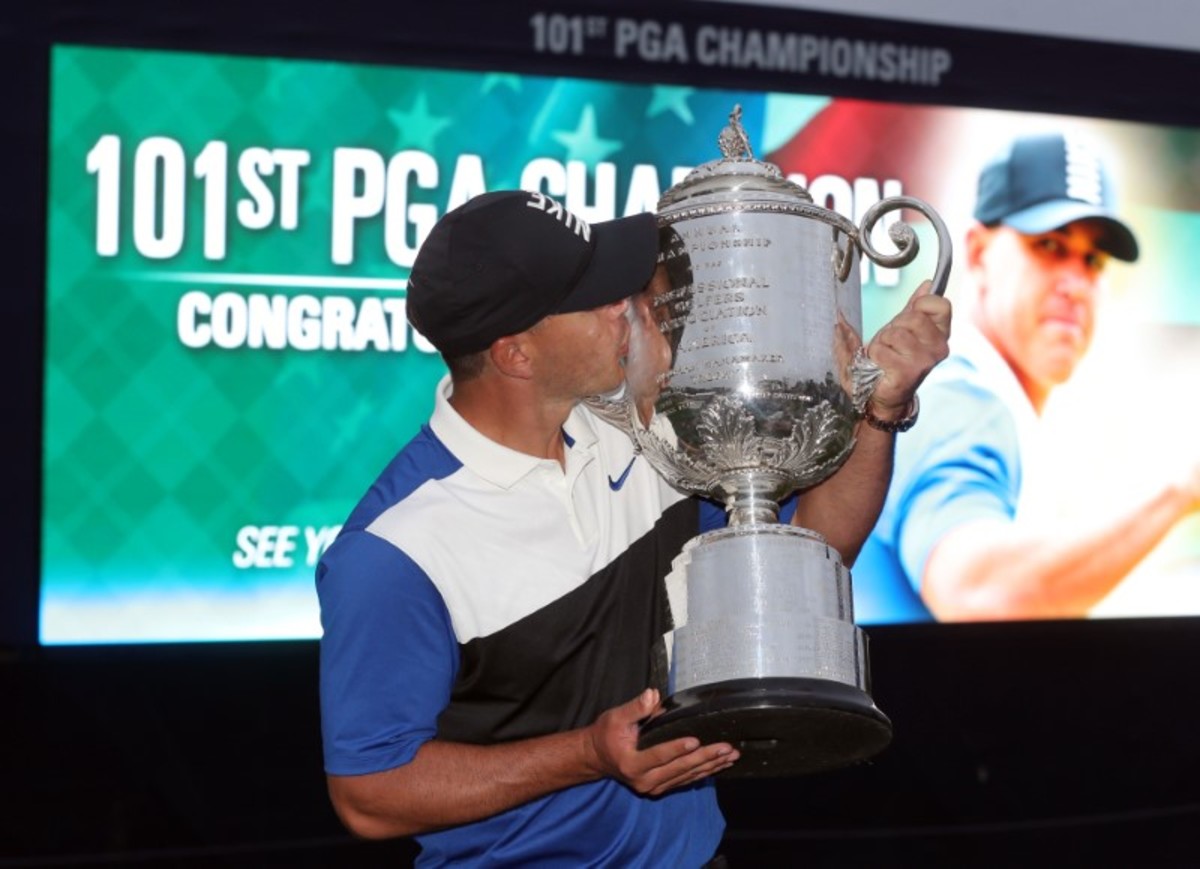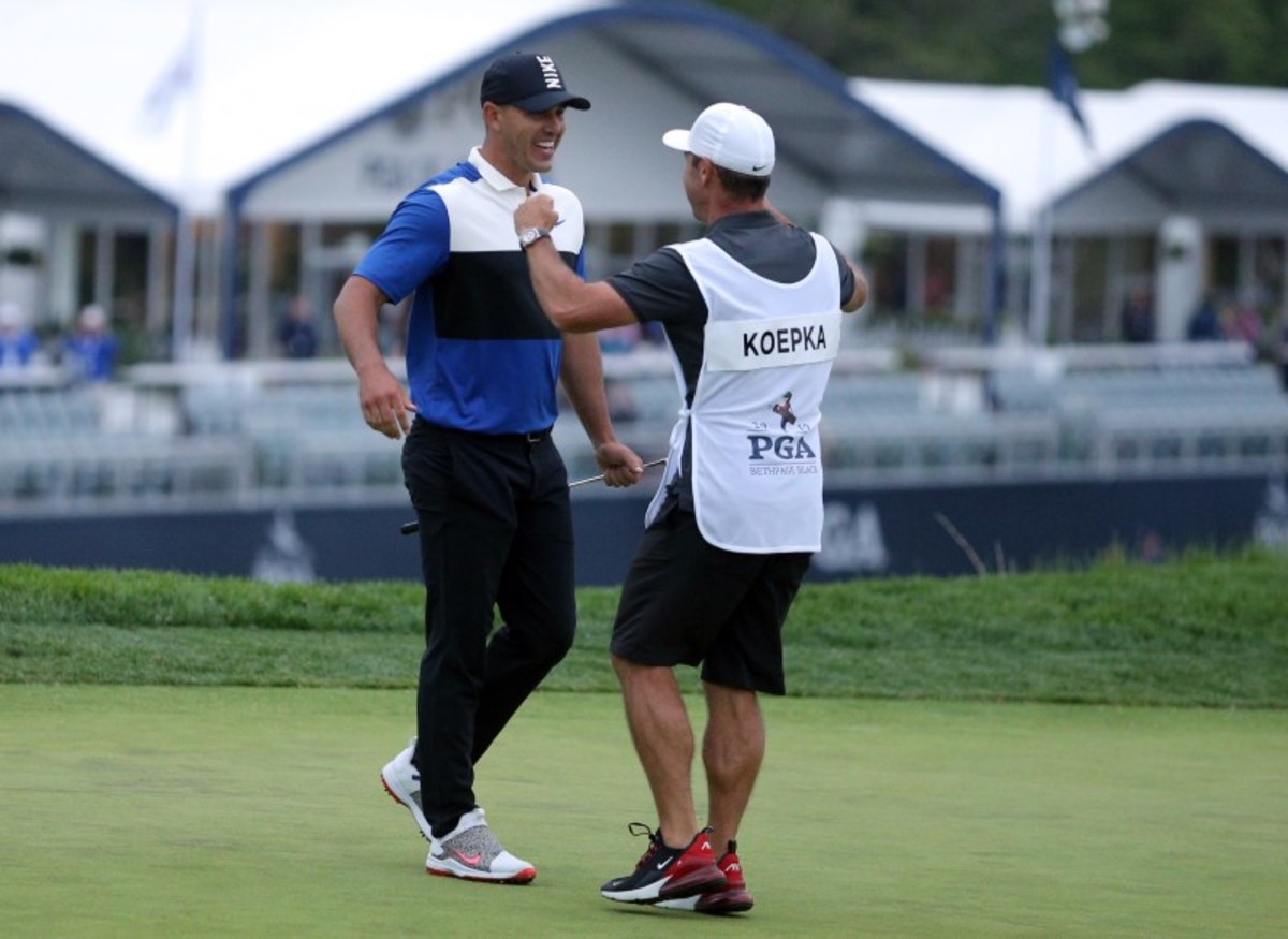 May 19, 2019; Bethpage, NY, USA; Brooks Koepka celebrates with his caddie Ricky Elliott after winning the PGA Championship golf tournament at Bethpage State Park - Black Course. Mandatory Credit: Brad Penner-USA TODAY SportsMay 19, 2019; Bethpage, NY, USA; Brooks Koepka plays his shot from the eighth tee during the final round of the PGA Championship golf tournament at Bethpage State Park - Black Course. Mandatory Credit: Peter Casey-USA TODAY SportsMay 19, 2019; Bethpage, NY, USA; Brooks Koepka celebrates with his family after winning the PGA Championship golf tournament at Bethpage State Park - Black Course. Mandatory Credit: John David Mercer-USA TODAY SportsMay 19, 2019; Bethpage, NY, USA; Brooks Koepka on the seventh hole during the final round of the PGA Championship golf tournament at Bethpage State Park - Black Course. Mandatory Credit: Peter Casey-USA TODAY SportsMay 19, 2019; Bethpage, NY, USA; Brooks Koepka reacts on the 14th green during the final round of the PGA Championship golf tournament at Bethpage State Park - Black Course. Mandatory Credit: John David Mercer-USA TODAY SportsMay 19, 2019; Bethpage, NY, USA; Brooks Koepka holds the Wanamaker Trophy after winning the PGA Championship golf tournament at Bethpage State Park - Black Course. Mandatory Credit: Brad Penner-USA TODAY SportsMay 19, 2019; Bethpage, NY, USA; Brooks Koepka lines up his shot on the 14th green during the final round of the PGA Championship golf tournament at Bethpage State Park - Black Course. Mandatory Credit: John David Mercer-USA TODAY SportsMay 19, 2019; Bethpage, NY, USA; Brooks Koepka putts on the seventh green during the final round of the PGA Championship golf tournament at Bethpage State Park - Black Course. Mandatory Credit: Peter Casey-USA TODAY Sports
