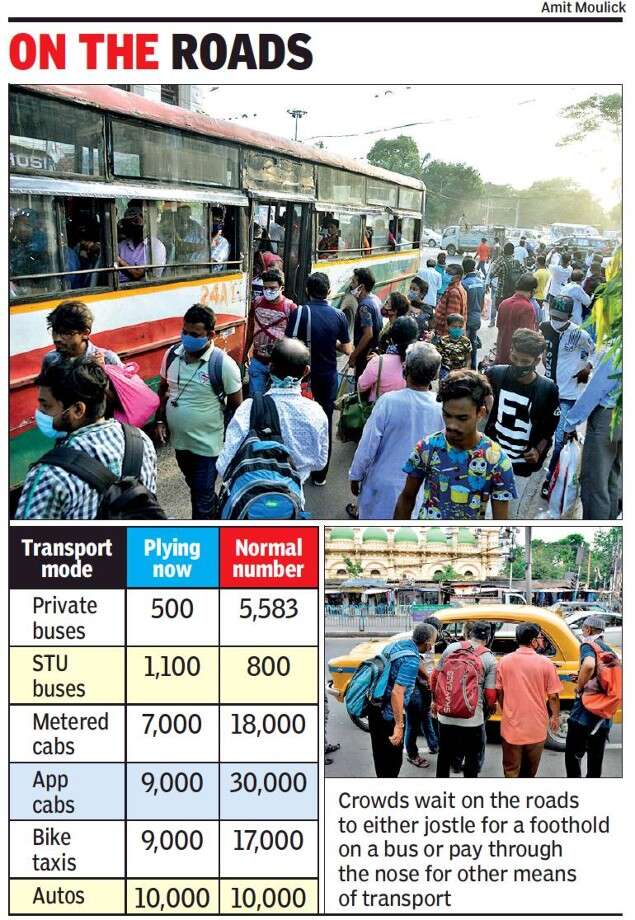 KOLKATA: Nearly two weeks have gone by since bus services have been resumed and still, private buses are hard to spot on city roads. Costlier fuel, operators said, was stopping them from taking buses out on the road. The operators are running a signature campaign among commuters on the necessity of a fare revision. Meanwhile, a section of taxi operators have threatened to go on a strike if the fare is not revised immediately.