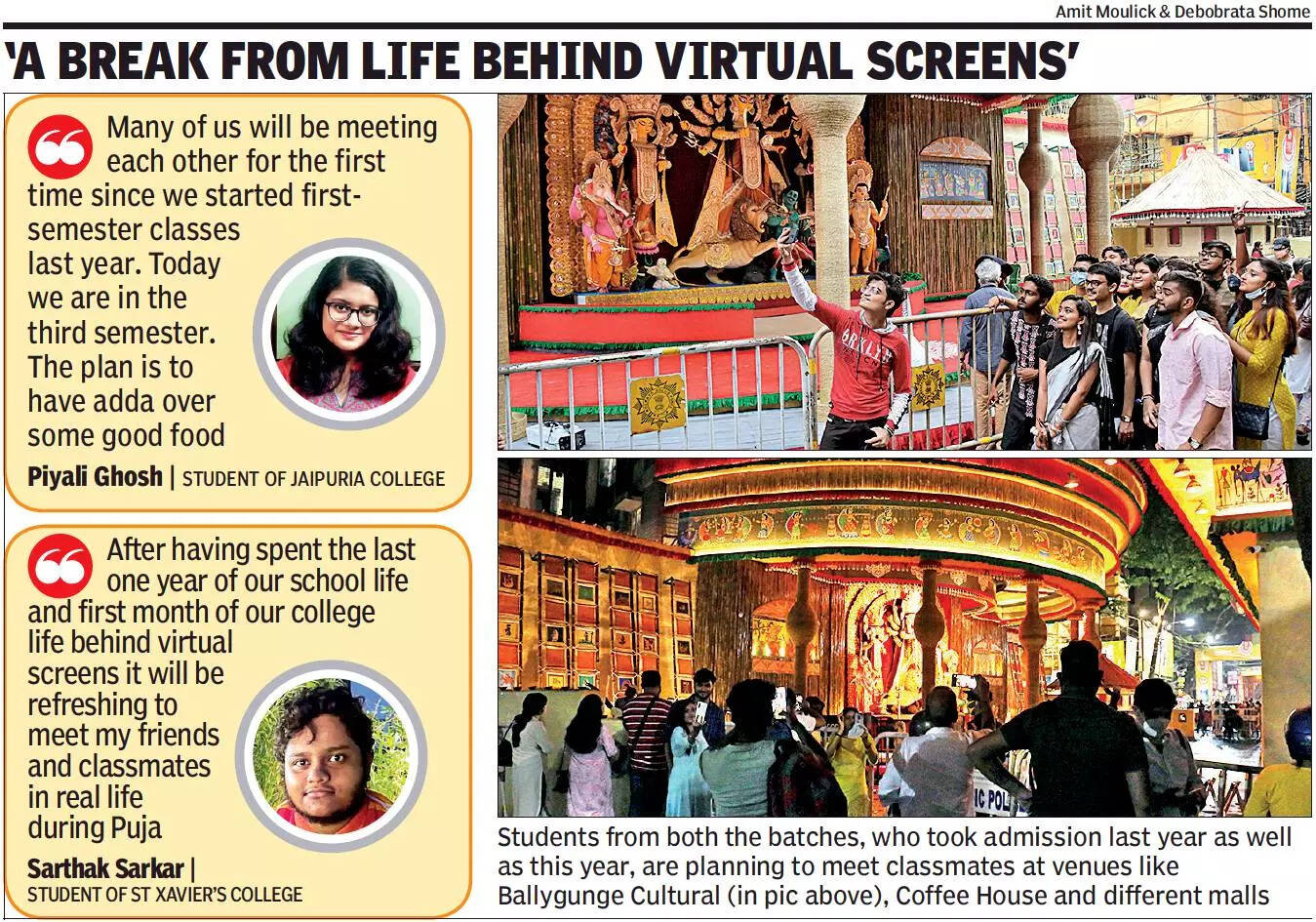 KOLKATA: Rohini Datta, a first-year student, has a special meet-up on Saptami. She will be meeting her classmates in person at Indian Coffee House on College Street for the first time since getting admission in college two months ago.