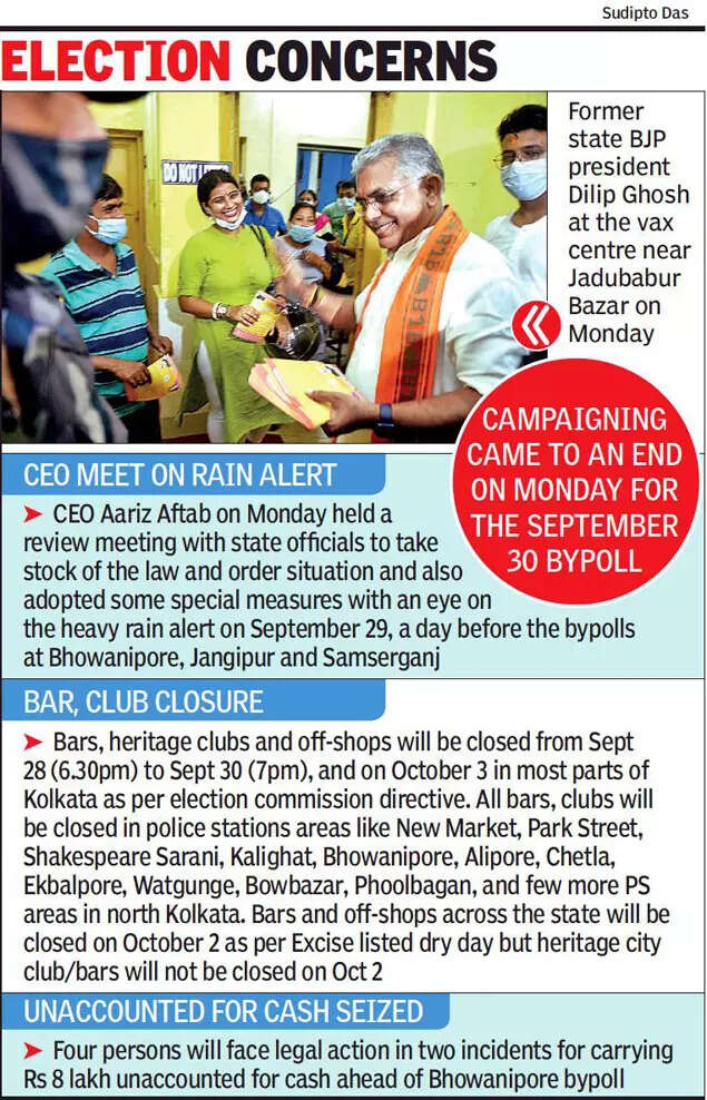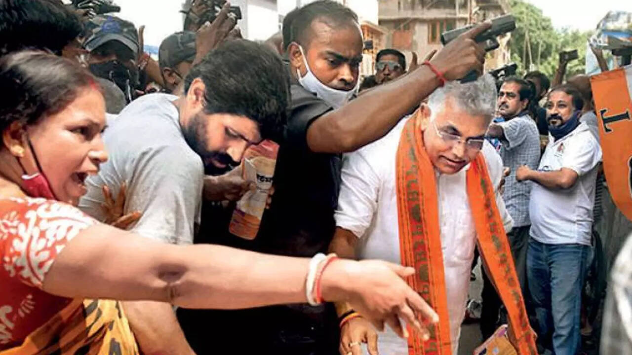 KOLKATA: The Election Commission on Monday sought an urgent report from the Bengal government after a scuffle between Trinamool and BJP supporters around former state BJP chief Dilip Ghosh near Jadubabur Bazar on the last day of campaigning for the Bhowanipore bypoll.