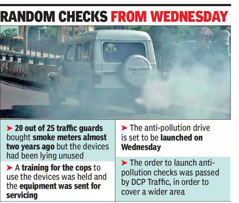 KOLKATA: The traffic police on Wednesday asked traffic guards to conduct pollution tests on vehicles at random, especially since there has been an explosion of private cars and bikes on the roads to avoid jostling on public transport in Covid times. The task to keep a check on toxic fumes from vehicles was so far restricted to the anti-pollution cell of Lalbazar but Kolkata Traffic Police decided to step in for the first time.