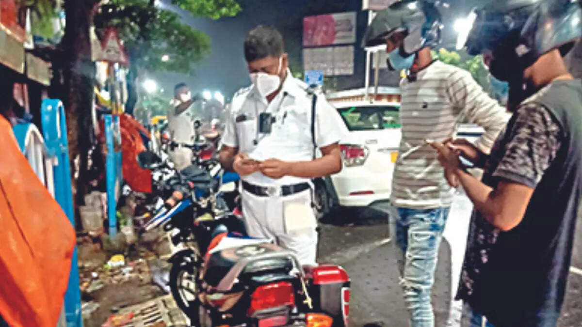 KOLKATA: Night nakas, meant to enforce movement restrictions from 11pm to 5am in Kolkata, have helped police net seven criminals over the past weeks. Lost property, like bikes and illegal weapons, have also been seized from them. On Saturday and Sunday, cops checked 975 vehicles and prosecuted 384 for breaking night restrictions; 278 people were prosecuted for breaking Covid norms and 926 others were caught for not wearing masks properly.