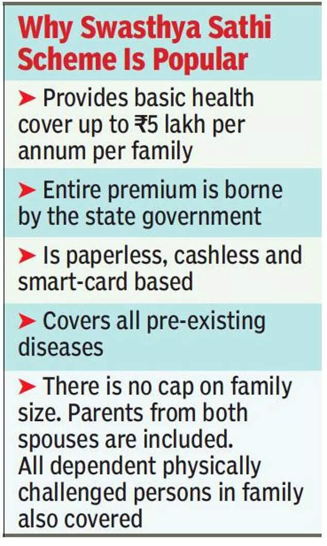KOLKATA: Admission of patients under the Swasthya Sathi (SS) scheme — a subsidized state government insurance plan that offers coverage of up to Rs 5 lakh a year — has been stalled at several city private hospitals which have “ run out of beds” to accommodate these patients. While some say their SS wards are full, others claim they are not in a position to admit more patients under the scheme due to financial and space constraints.