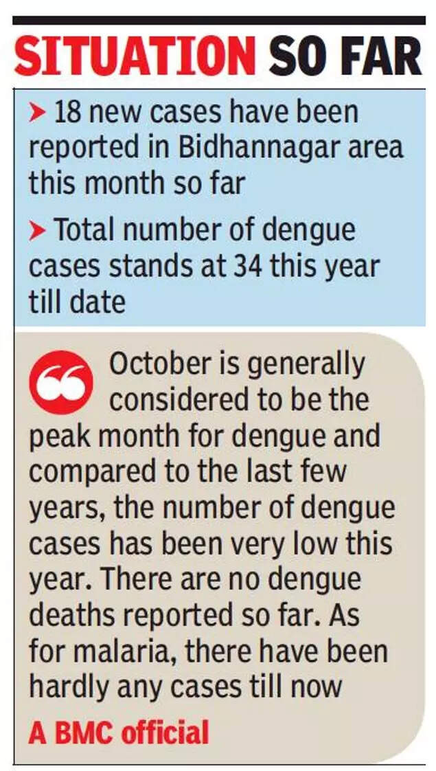 KOLKATA: There has been a rise in the number of dengue cases in Bidhannagar this month after going through an all-time low till September this year. Authorities of the Bidhannagar Municipal Corporation (BMC) said that 18 new cases have been reported this month alone so far, taking the total dengue affected number in entire BMC area to about 34this year till date.