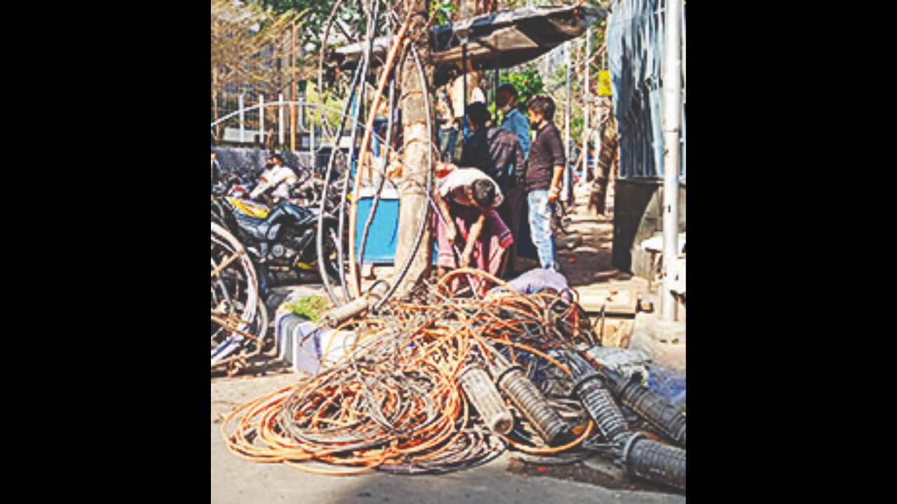 “Overhead cable mess is everywhere across Salt Lake. It is very dangerous and risky for people like us who ride bikes. It becomes difficult to spot the snapped wires from a distance after sunset. The civic body should look into the matter seriously,” said Kawshik Dutta, a resident of BD block.