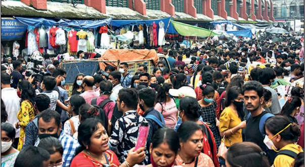 KOLKATA: With only three Sundays left before Chaturthi, a large number of people, armed with umbrellas and masks that were either hanging from the chins or crumpled inside pockets, thronged the shopping hubs across the city.