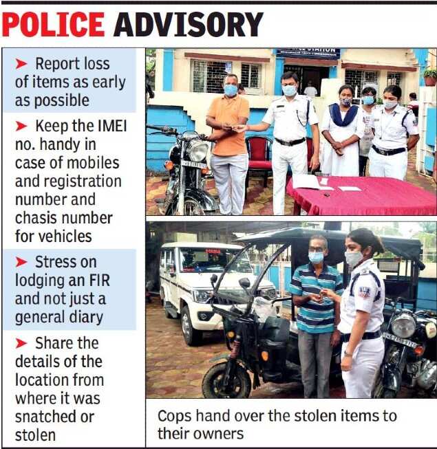 KOLKATA: From yellow taxis to a Royal Enfield motorbike and a Toto electric vehicle to multiple mobile phones, Bidhannagar City Police has enhanced the lost/stolen articles return drive to rightful owners following all legal protocols.