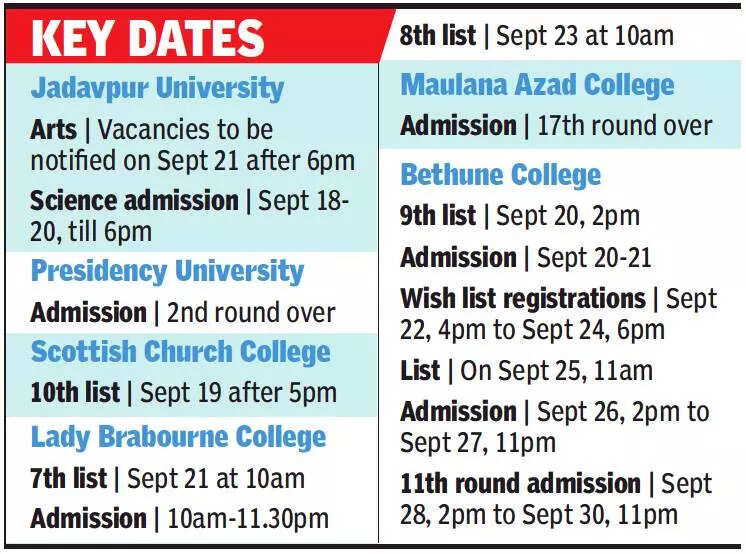 KOLKATA: With just 10 days left for UG admissions to close, several colleges fear genuine aspirants may miss out on berths due to seats being blocked by those who have chosen to study in specific colleges without conveying their decisions to the others.