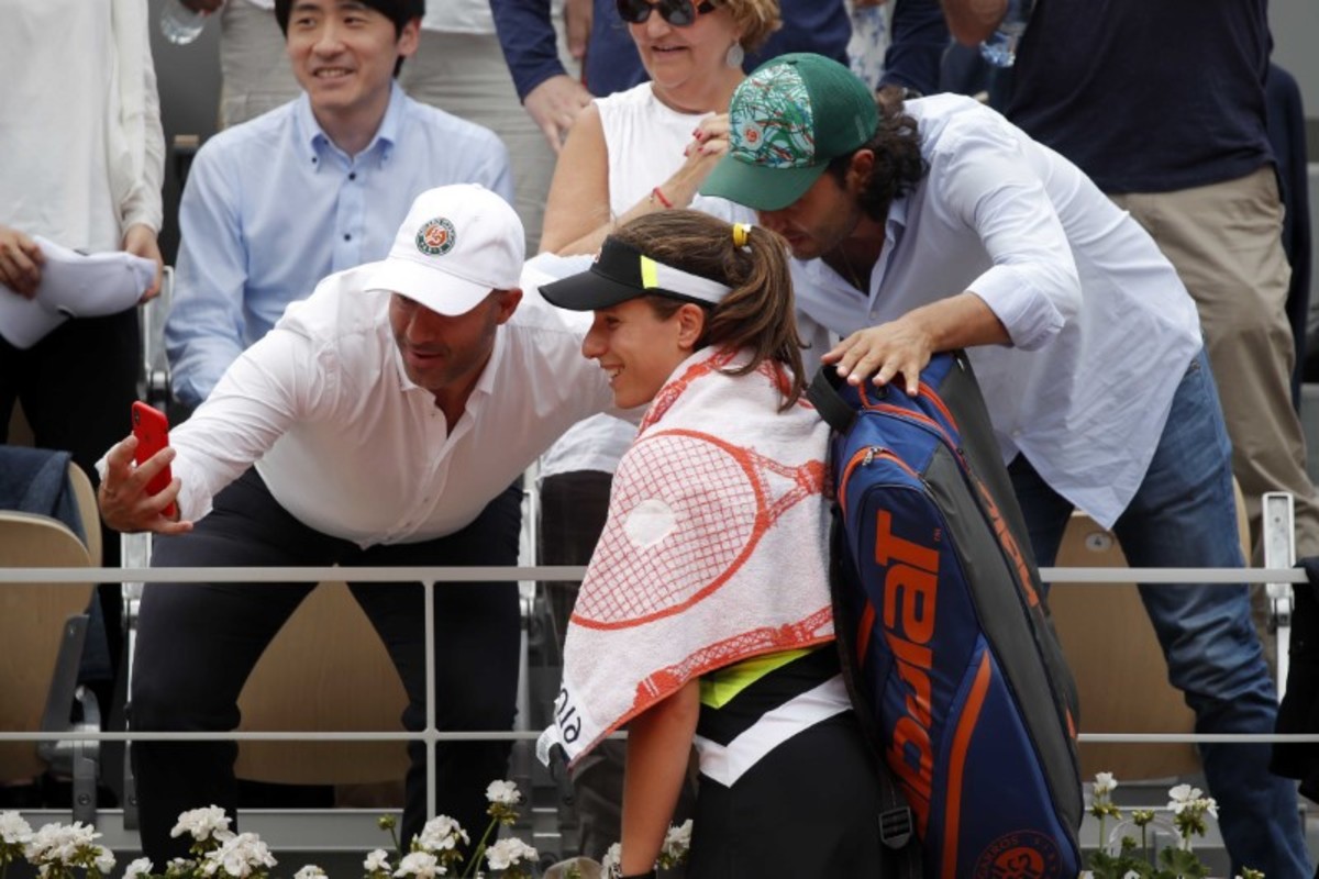 Tennis - French Open - Roland Garros, Paris, France - June 4, 2019. Britain's Johanna Konta poses for a selfie after winning her quarterfinal match against Sloane Stephens of the U.S. REUTERS/Charles Platiau