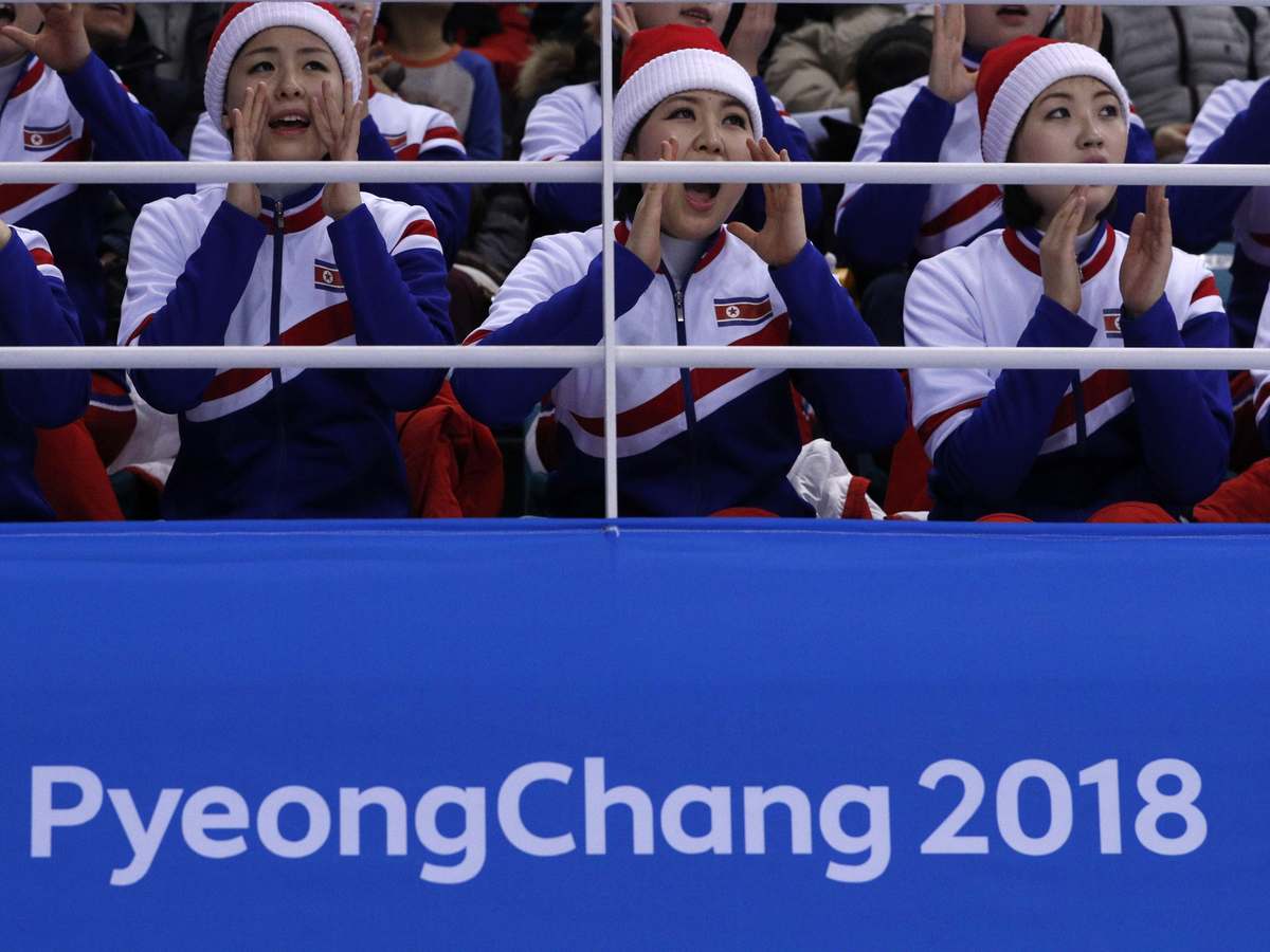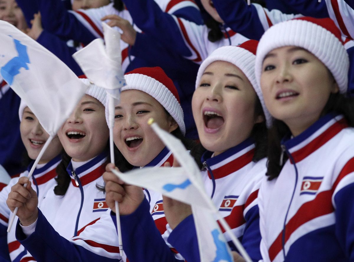 For a second straight game, North Korea's official cheerleading team was in attendance, decked out in red snow suits and red and white beanies.