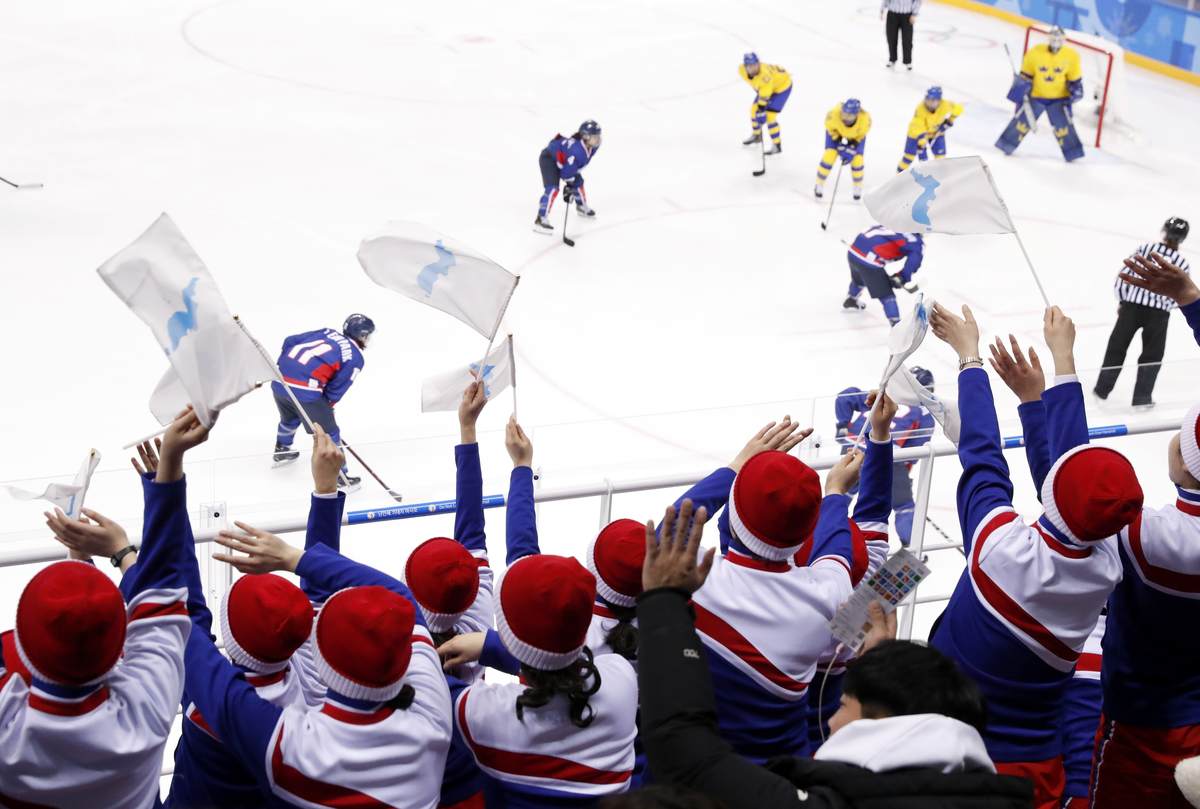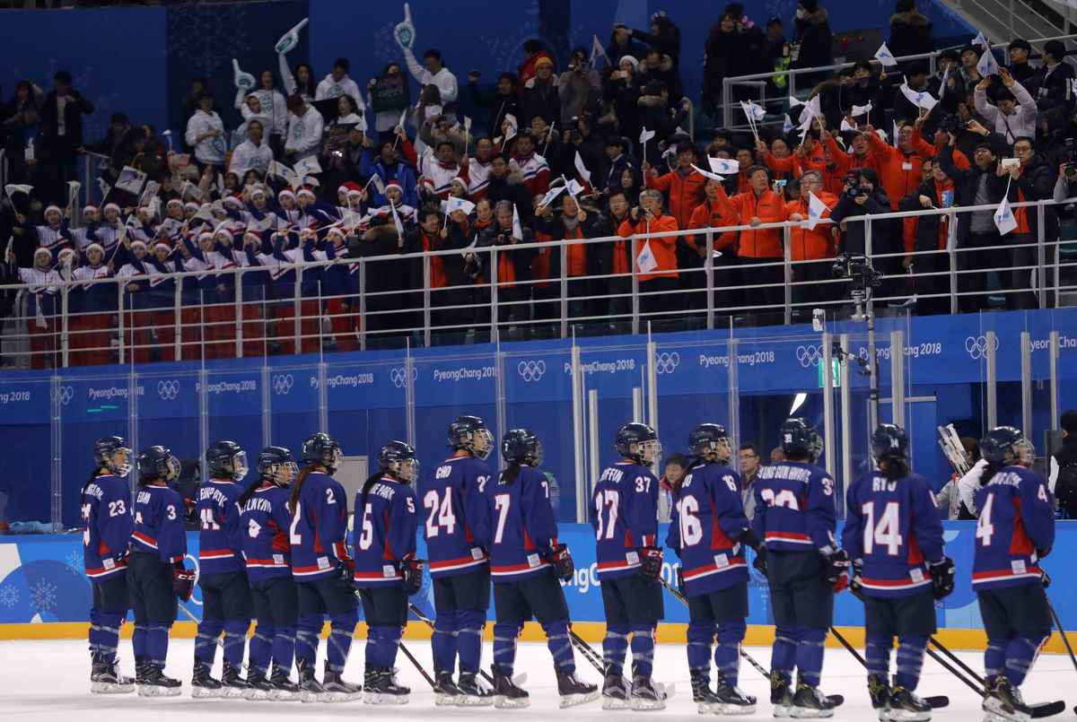 If anything, the crowd energy was even more electric than at Saturday's game, an 8-0 loss to the Swiss, attended by South Korean President Moon Jae-in and North Korean leader Kim Jong Un's younger sister Kim Yo Jong.