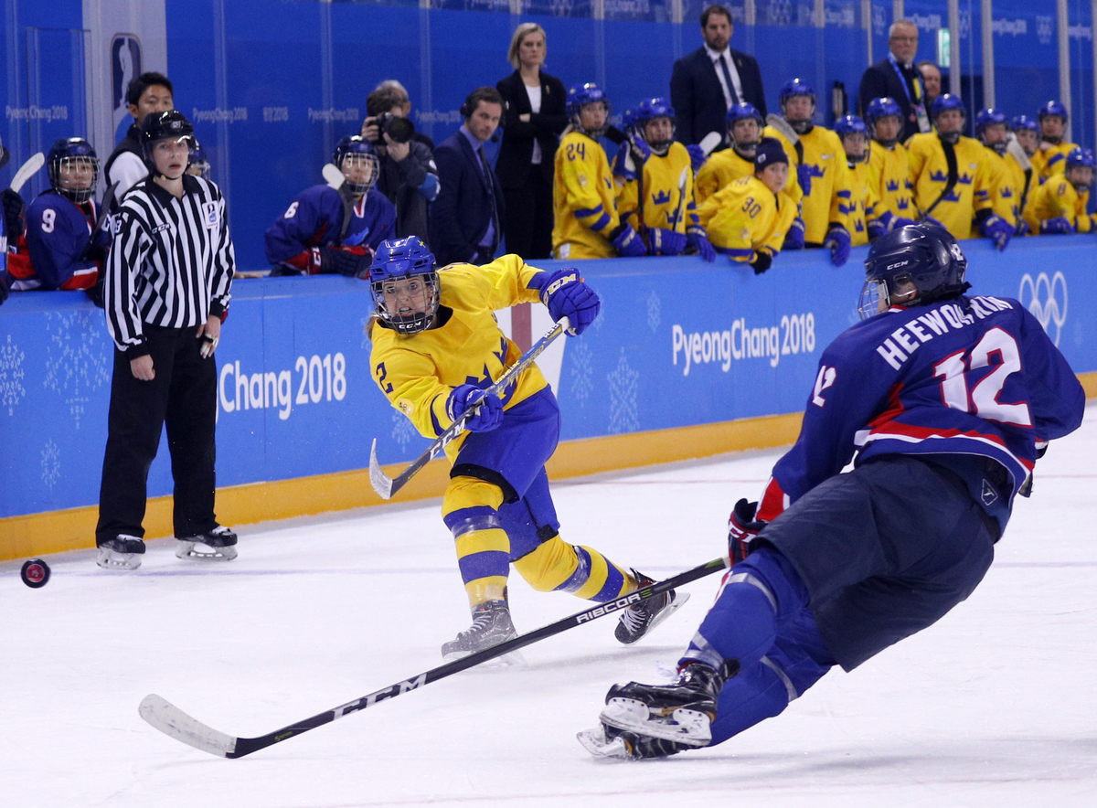 GANGNEUNG, South Korea (Reuters) - Korea's unified women's Olympic hockey team suffered their second lop-sided defeat on Monday, as seven different players scored to lift Sweden to an 8-0 win on another night of jubilant displays of goodwill between the two Koreas.
