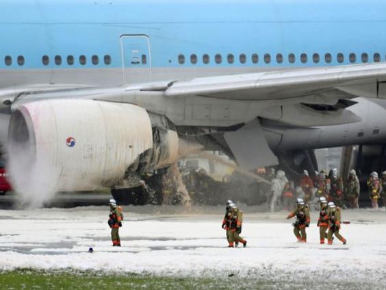 A Korean Air plane caught fire minutes before taking off from a Tokyo airport.