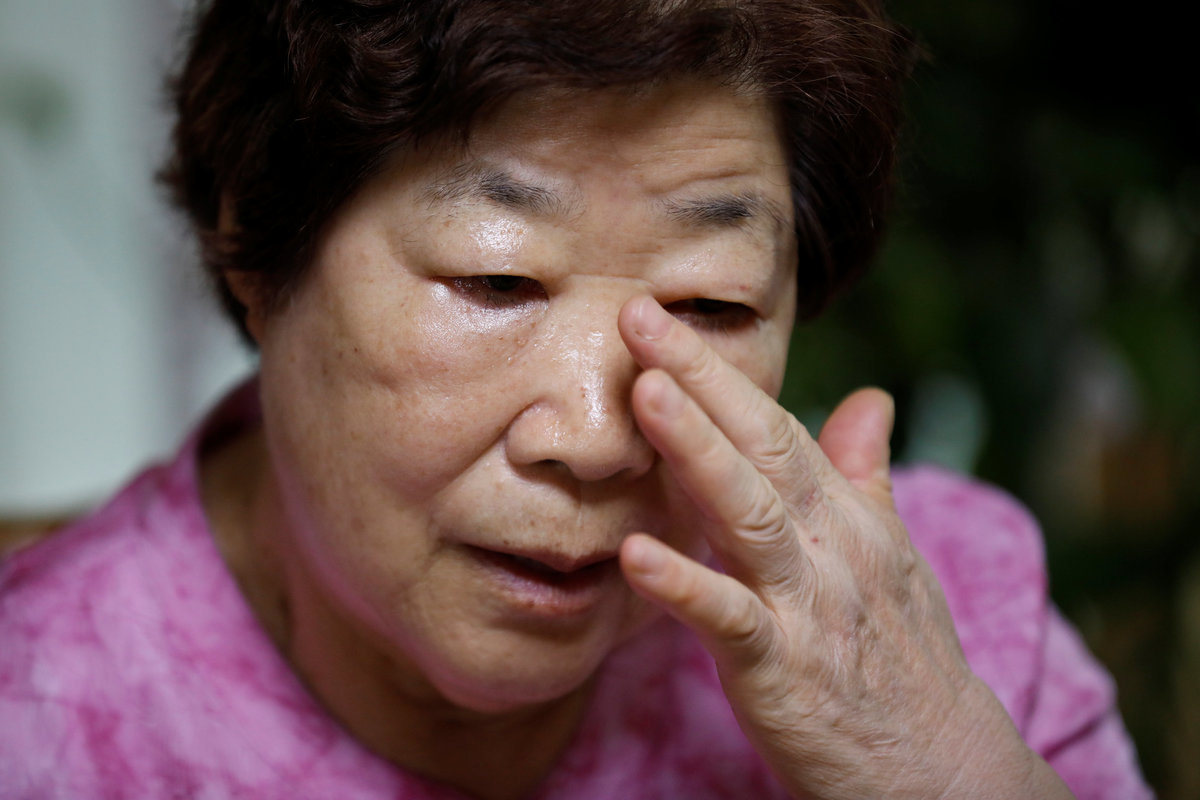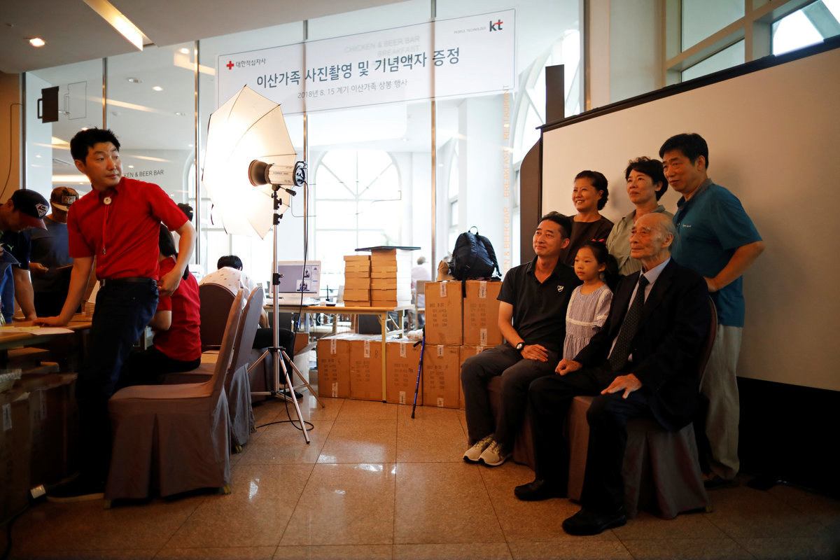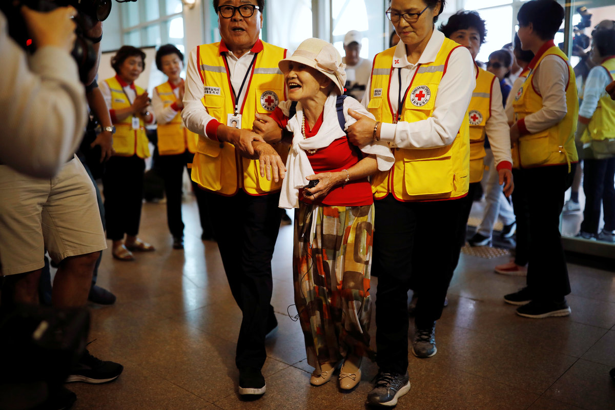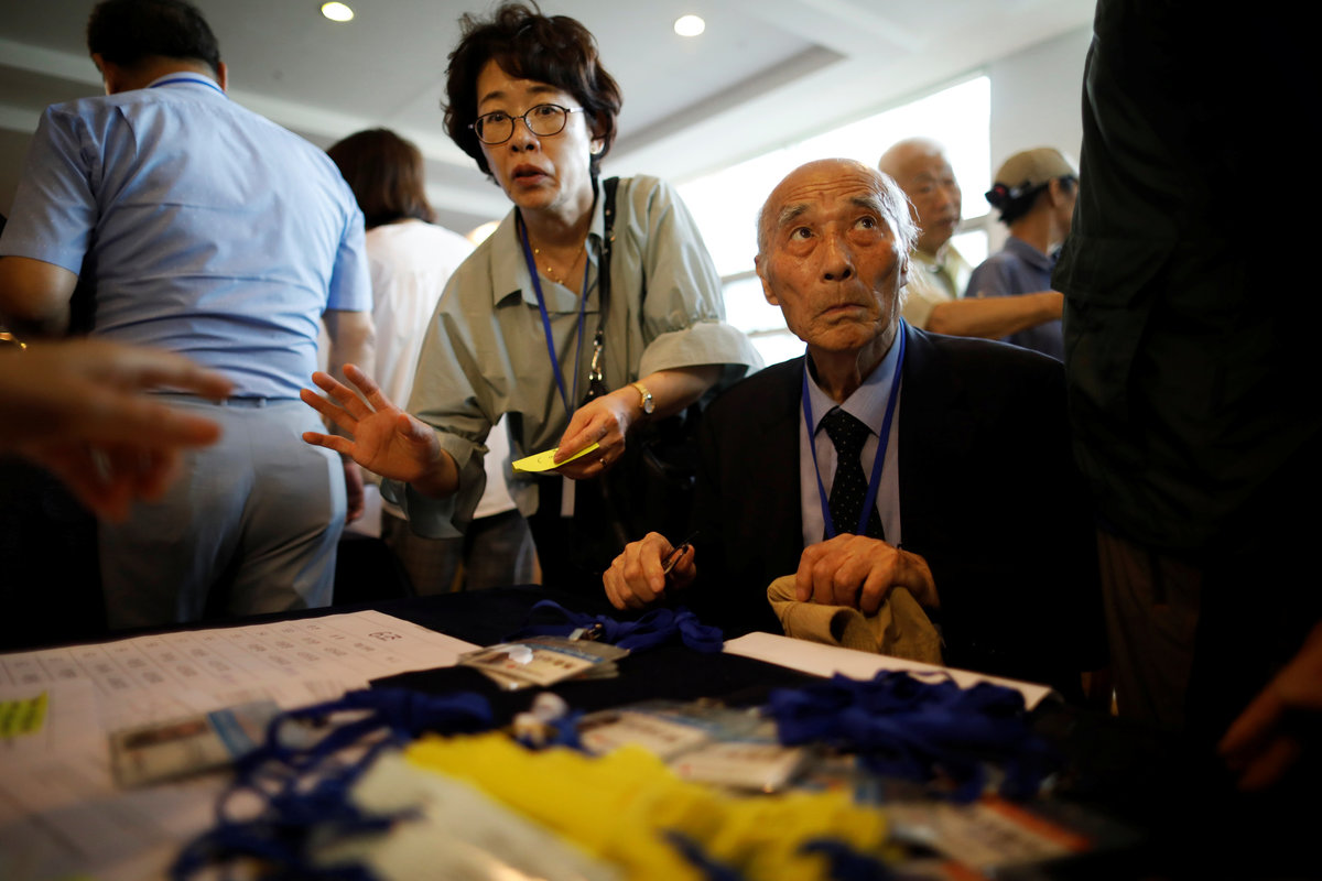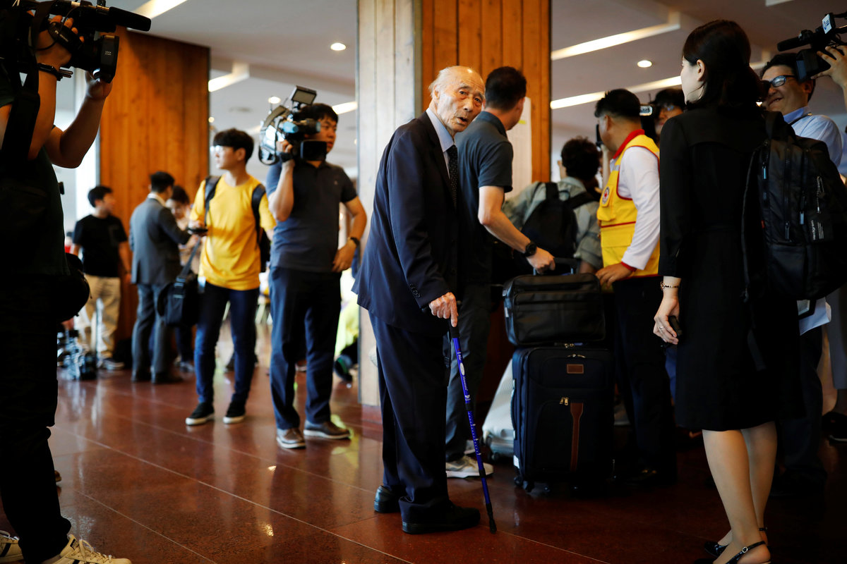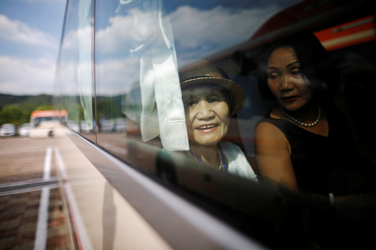 Lee Geum-seom, who has been selected as a participant for a reunion, is helped by volunteers as she arrives at a hotel used as a waiting place in Sokcho, South Korea, August 19, 2018. REUTERS/Kim Hong-JiLee Geum-seom, who has been selected as a participant for a reunion, speaks to the media as she arrives at a hotel used as a waiting place in Sokcho, South Korea, August 19, 2018. REUTERS/Kim Hong-JiKim Hyun-sook poses for photographs after an interview with Reuters at her home in Seoul, South Korea, August 2, 2018. Picture taken August 2, 2018. REUTERS/Kim Hong-JiPhotos taken while Kim Hyun-sook attended last family reunions are seen during her interview with Reuters at her home in Seoul, South Korea, August 2, 2018. Picture taken August 2, 2018. REUTERS/Kim Hong-JiKim Hyun-sook poses for photographs with an old photo showing her daughters, during an interview with Reuters at her home in Seoul, South Korea, August 2, 2018. Picture taken August 2, 2018. REUTERS/Kim Hong-JiKim Hyun-sook speaks during an interview with Reuters at her home in Seoul, South Korea, August 2, 2018. Picture taken August 2, 2018. REUTERS/Kim Hong-JiBae Soon-hui sheds a tear during an interview with Reuters at her home in Seoul, South Korea, August 9, 2018. Picture taken August 9, 2018. REUTERS/Kim Hong-JiHwang Rae-ha poses for photographs in front of a pair of binoculars in Ganghwa, South Korea, July 25, 2018. Picture taken July 25, 2018. REUTERS/Lim Sang-gyuA woman who are selected as a participant for a reunion arrives at a hotel used as a waiting place in Sokcho, South Korea, August 19, 2018. REUTERS/Kim Hong-JiKim Hyun-sook poses for photographs with an old photo showing her daughters, during an interview with Reuters at her home in Seoul, South Korea. REUTERS/Kim Hong-JiA man who has been selected as a participant for a reunion is wheeled as he arrives at a hotel used as a waiting place in Sokcho, South Korea, August 19, 2018. REUTERS/Kim Hong-JiMoon Hyun-sook who has been selected as a participant for a reunion rests at a hotel used as a waiting place in Sokcho, South Korea, August 19, 2018. REUTERS/Kim Hong-Ji Moon Hyun-sook (R) who has been selected as a participant for a reunion rests at a hotel used as a waiting place in Sokcho, South Korea, August 19, 2018. REUTERS/Kim Hong-JiA man who has been selected as a participant for a reunion holds an old picture at a hotel used as a waiting place in Sokcho, South Korea, August 19, 2018. REUTERS/Kim Hong-JiPark Kab-il and Baek Seong-yeon who have been selected as participants for a reunion rest at a hotel used as a waiting place in Sokcho, South Korea, August 19, 2018. REUTERS/Kim Hong-JiA man who has been selected as a participant for a reunion reacts as he arrives at a hotel used as a waiting place in Sokcho, South Korea, August 19, 2018. REUTERS/Kim Hong-Ji A man who has been selected as a participant for a reunion rests at a hotel used as a waiting place in Sokcho, South Korea, August 19, 2018. REUTERS/Kim Hong-JiA man who has been selected as a participant for a reunion arrives at a hotel used as a waiting place in Sokcho, South Korea, August 19, 2018. REUTERS/Kim Hong-JiA woman who has been selected as a participant for a reunion takes a selfie with her family members at a hotel used as a waiting place in Sokcho, South Korea, August 19, 2018. REUTERS/Kim Hong-JiA man who has been selected as a participant for a reunion arrives at a hotel used as a waiting place in Sokcho, South Korea, August 19, 2018. REUTERS/Kim Hong-JiA man who has been selected as a participant for a reunion reacts as he arrives at a hotel used as a waiting place in Sokcho, South Korea, August 19, 2018. REUTERS/Kim Hong-JiA man who has been selected as a participant for a reunion poses for a group photo with his family members at a hotel used as a waiting place in Sokcho, South Korea, August 19, 2018. REUTERS/Kim Hong-JiA woman selected as a participant for a reunion rests at a hotel used as a waiting place in Sokcho, South Korea, August 19, 2018. REUTERS/Kim Hong-JiSouth Korean participants for a reunion arrive at the South's CIQ (Customs, Immigration and Quarantine), just south of the DMZ in Goseong, South Korea, August 20, 2018. REUTERS/Kim Hong-JiBuses transporting South Korean participants for a reunion travel on the road leading to North Korea's Mount Kumgang resort, in the demilitarized zone (DMZ) separating the two Koreas, in this picture taken from the Unification Observatory, just south of the DMZ in Goseong, South Korea, August 20, 2018. REUTERS/Kim Hong-JiBuses transporting South Korean participants for a reunion travel on the road leading to North Korea's Mount Kumgang resort, in the demilitarized zone (DMZ) separating the two Koreas, in this picture taken from the Unification Observatory, just south of the DMZ in Goseong, South Korea, August 20, 2018. REUTERS/Kim Hong-JiBuses transporting South Korean participants for a reunion travel on the road leading to North Korea's Mount Kumgang resort, in the demilitarized zone (DMZ) separating the two Koreas, in this picture taken from the Unification Observatory, just south of the DMZ in Goseong, South Korea, August 20, 2018. REUTERS/Kim Hong-JiA South Korean soldier stands guard at the Unification Observatory, just south of the demilitarized zone separating the two Koreas in Goseong, South Korea, August 20, 2018. REUTERS/Kim Hong-JiA man looks toward the north through field glasses as a family poses for a photograph, at the Unification Observatory just south of the demilitarized zone separating the two Koreas in Goseong, South Korea, August 20, 2018. REUTERS/Kim Hong-JiA woman looks toward the north through a field glasses from the Unification Observatory, just south of the demilitarized zone separating the two Koreas in Goseong, South Korea, August 20, 2018. REUTERS/Kim Hong-JiA woman in traditional costume Hanbok takes photographs of North Korean territory from the Unification Observatory, just south of the demilitarized zone s