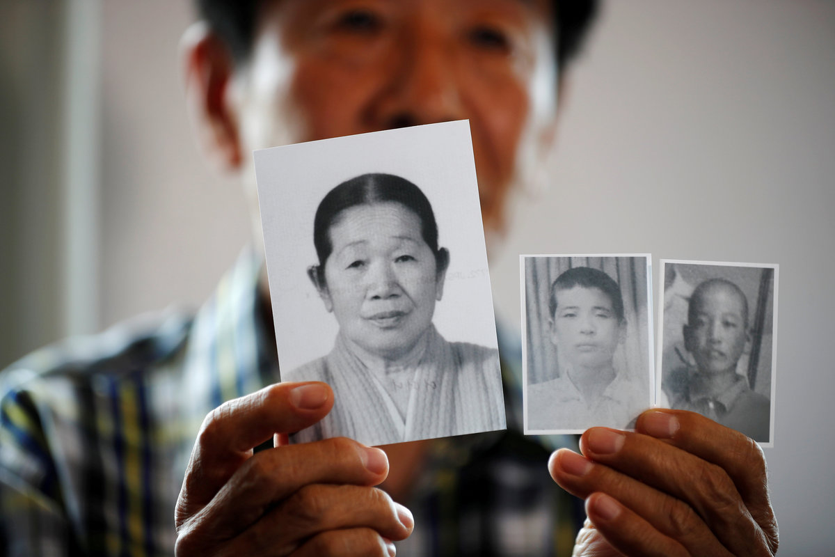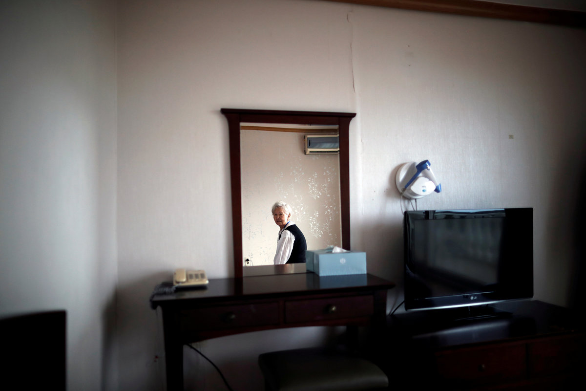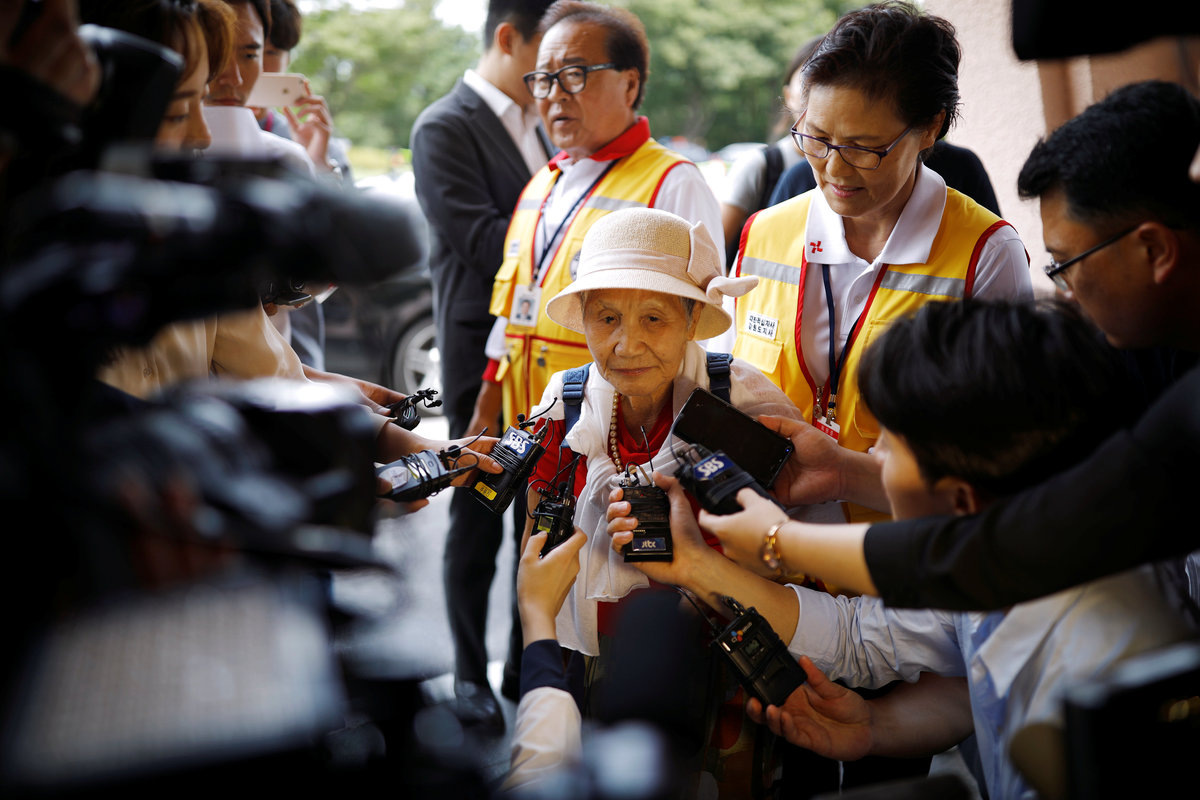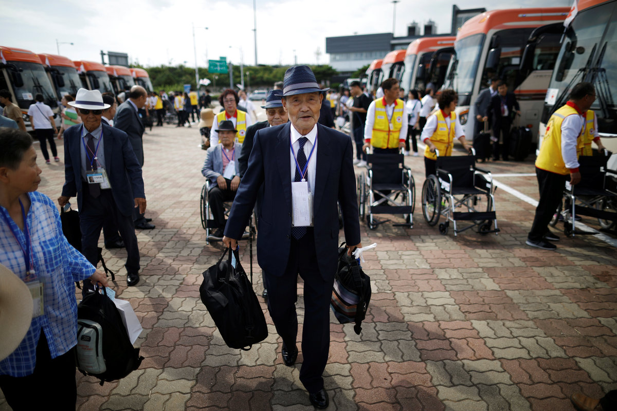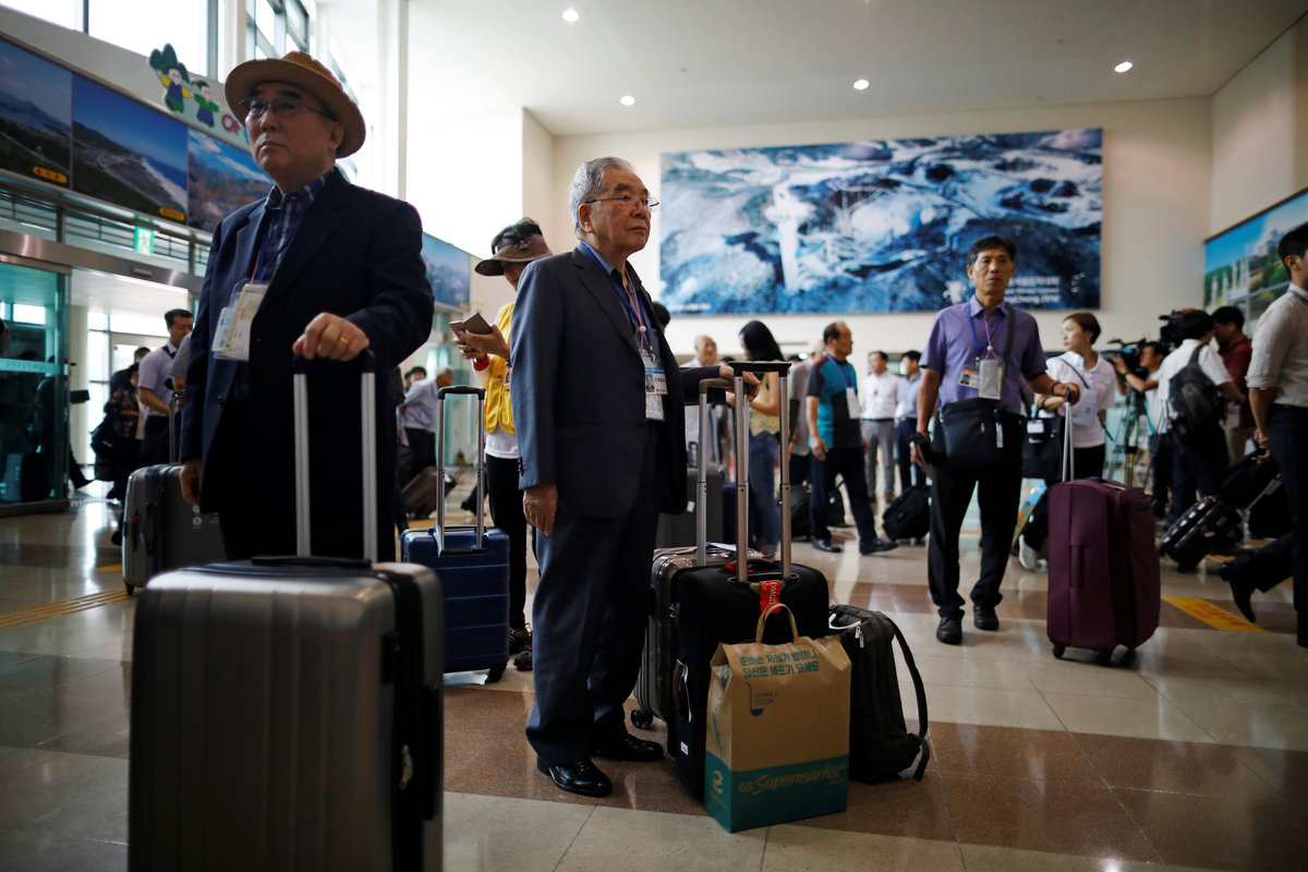 Lee Geum-seom, who has been selected as a participant for a reunion, is helped by volunteers as she arrives at a hotel used as a waiting place in Sokcho, South Korea, August 19, 2018. REUTERS/Kim Hong-JiLee Geum-seom, who has been selected as a participant for a reunion, speaks to the media as she arrives at a hotel used as a waiting place in Sokcho, South Korea, August 19, 2018. REUTERS/Kim Hong-JiKim Hyun-sook poses for photographs after an interview with Reuters at her home in Seoul, South Korea, August 2, 2018. Picture taken August 2, 2018. REUTERS/Kim Hong-JiPhotos taken while Kim Hyun-sook attended last family reunions are seen during her interview with Reuters at her home in Seoul, South Korea, August 2, 2018. Picture taken August 2, 2018. REUTERS/Kim Hong-JiKim Hyun-sook poses for photographs with an old photo showing her daughters, during an interview with Reuters at her home in Seoul, South Korea, August 2, 2018. Picture taken August 2, 2018. REUTERS/Kim Hong-JiKim Hyun-sook speaks during an interview with Reuters at her home in Seoul, South Korea, August 2, 2018. Picture taken August 2, 2018. REUTERS/Kim Hong-JiBae Soon-hui sheds a tear during an interview with Reuters at her home in Seoul, South Korea, August 9, 2018. Picture taken August 9, 2018. REUTERS/Kim Hong-JiHwang Rae-ha poses for photographs in front of a pair of binoculars in Ganghwa, South Korea, July 25, 2018. Picture taken July 25, 2018. REUTERS/Lim Sang-gyuA woman who are selected as a participant for a reunion arrives at a hotel used as a waiting place in Sokcho, South Korea, August 19, 2018. REUTERS/Kim Hong-JiKim Hyun-sook poses for photographs with an old photo showing her daughters, during an interview with Reuters at her home in Seoul, South Korea. REUTERS/Kim Hong-JiA man who has been selected as a participant for a reunion is wheeled as he arrives at a hotel used as a waiting place in Sokcho, South Korea, August 19, 2018. REUTERS/Kim Hong-JiMoon Hyun-sook who has been selected as a participant for a reunion rests at a hotel used as a waiting place in Sokcho, South Korea, August 19, 2018. REUTERS/Kim Hong-Ji Moon Hyun-sook (R) who has been selected as a participant for a reunion rests at a hotel used as a waiting place in Sokcho, South Korea, August 19, 2018. REUTERS/Kim Hong-JiA man who has been selected as a participant for a reunion holds an old picture at a hotel used as a waiting place in Sokcho, South Korea, August 19, 2018. REUTERS/Kim Hong-JiPark Kab-il and Baek Seong-yeon who have been selected as participants for a reunion rest at a hotel used as a waiting place in Sokcho, South Korea, August 19, 2018. REUTERS/Kim Hong-JiA man who has been selected as a participant for a reunion reacts as he arrives at a hotel used as a waiting place in Sokcho, South Korea, August 19, 2018. REUTERS/Kim Hong-Ji A man who has been selected as a participant for a reunion rests at a hotel used as a waiting place in Sokcho, South Korea, August 19, 2018. REUTERS/Kim Hong-JiA man who has been selected as a participant for a reunion arrives at a hotel used as a waiting place in Sokcho, South Korea, August 19, 2018. REUTERS/Kim Hong-JiA woman who has been selected as a participant for a reunion takes a selfie with her family members at a hotel used as a waiting place in Sokcho, South Korea, August 19, 2018. REUTERS/Kim Hong-JiA man who has been selected as a participant for a reunion arrives at a hotel used as a waiting place in Sokcho, South Korea, August 19, 2018. REUTERS/Kim Hong-JiA man who has been selected as a participant for a reunion reacts as he arrives at a hotel used as a waiting place in Sokcho, South Korea, August 19, 2018. REUTERS/Kim Hong-JiA man who has been selected as a participant for a reunion poses for a group photo with his family members at a hotel used as a waiting place in Sokcho, South Korea, August 19, 2018. REUTERS/Kim Hong-JiA woman selected as a participant for a reunion rests at a hotel used as a waiting place in Sokcho, South Korea, August 19, 2018. REUTERS/Kim Hong-JiSouth Korean participants for a reunion arrive at the South's CIQ (Customs, Immigration and Quarantine), just south of the DMZ in Goseong, South Korea, August 20, 2018. REUTERS/Kim Hong-JiBuses transporting South Korean participants for a reunion travel on the road leading to North Korea's Mount Kumgang resort, in the demilitarized zone (DMZ) separating the two Koreas, in this picture taken from the Unification Observatory, just south of the DMZ in Goseong, South Korea, August 20, 2018. REUTERS/Kim Hong-JiBuses transporting South Korean participants for a reunion travel on the road leading to North Korea's Mount Kumgang resort, in the demilitarized zone (DMZ) separating the two Koreas, in this picture taken from the Unification Observatory, just south of the DMZ in Goseong, South Korea, August 20, 2018. REUTERS/Kim Hong-JiBuses transporting South Korean participants for a reunion travel on the road leading to North Korea's Mount Kumgang resort, in the demilitarized zone (DMZ) separating the two Koreas, in this picture taken from the Unification Observatory, just south of the DMZ in Goseong, South Korea, August 20, 2018. REUTERS/Kim Hong-JiA South Korean soldier stands guard at the Unification Observatory, just south of the demilitarized zone separating the two Koreas in Goseong, South Korea, August 20, 2018. REUTERS/Kim Hong-JiA man looks toward the north through field glasses as a family poses for a photograph, at the Unification Observatory just south of the demilitarized zone separating the two Koreas in Goseong, South Korea, August 20, 2018. REUTERS/Kim Hong-JiA woman looks toward the north through a field glasses from the Unification Observatory, just south of the demilitarized zone separating the two Koreas in Goseong, South Korea, August 20, 2018. REUTERS/Kim Hong-JiA woman in traditional costume Hanbok takes photographs of North Korean territory from the Unification Observatory, just south of the demilitarized zone s
