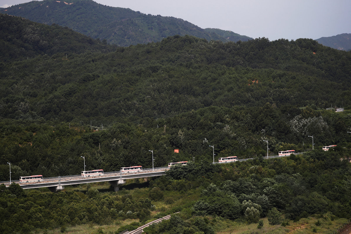 South Korean participants for a reunion arrive at the South's CIQ (Customs, Immigration and Quarantine), just south of the DMZ in Goseong, South Korea, August 20, 2018. REUTERS/Kim Hong-Ji