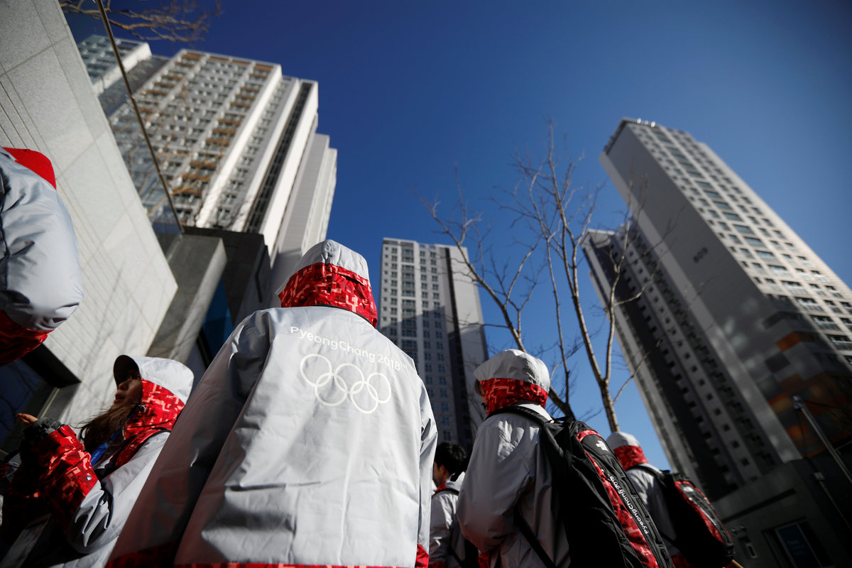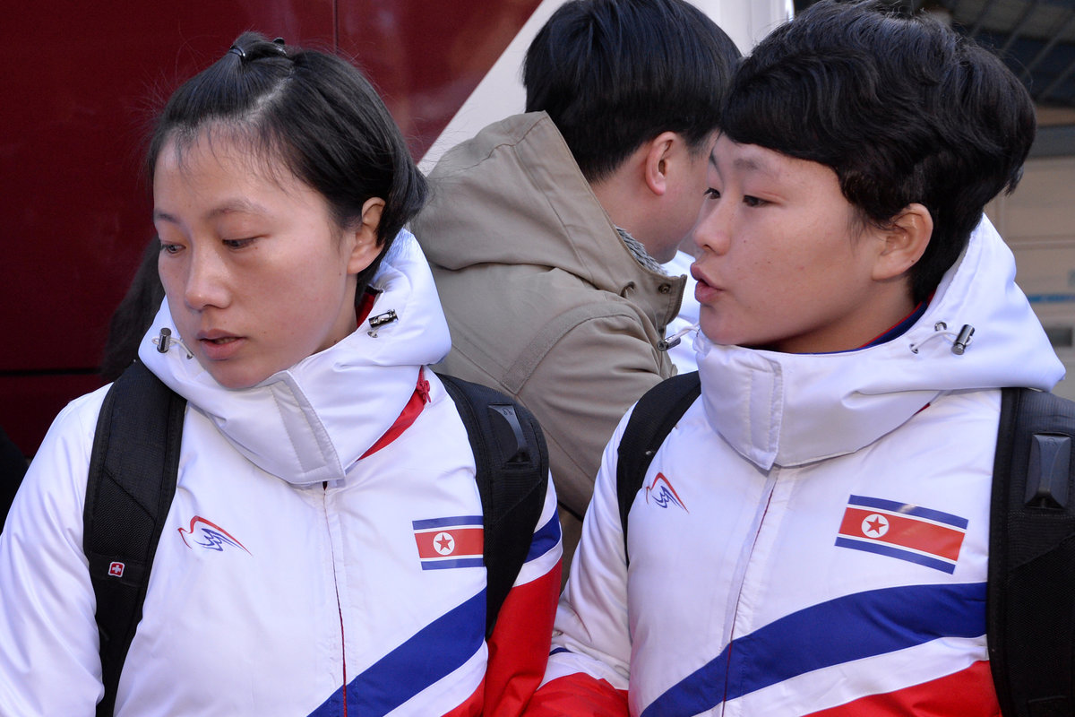 They wore puffy winter jackets in the white, blue, and red colours of North Korea's flag, with "DPR Korea" emblazoned on the back, referring to the country's official name, the Democratic People's Republic of Korea.