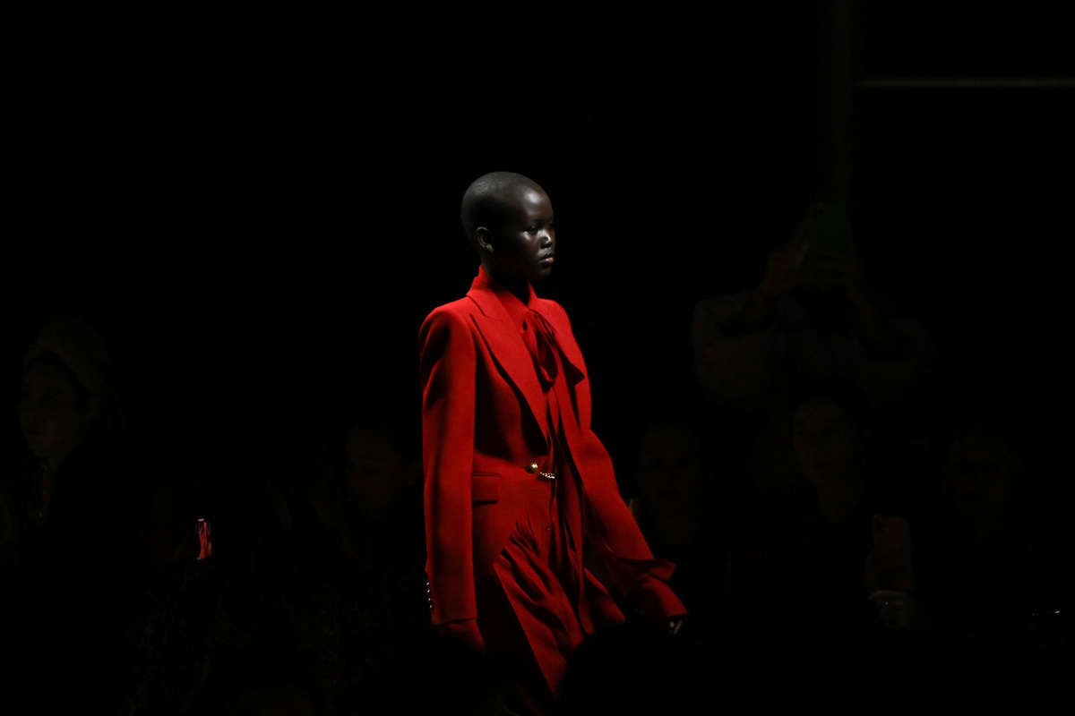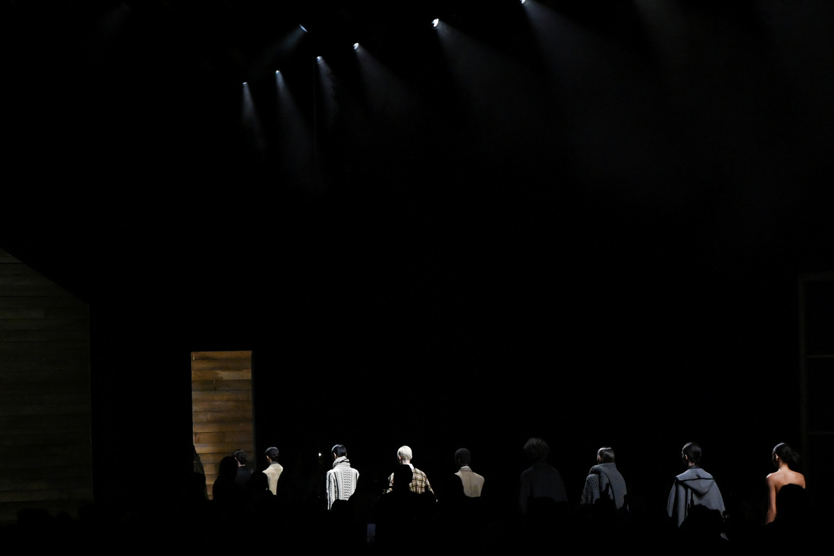 Kors' show featured Canadian country musician Orville Peck and his band playing foot-tapping country rock as models strode down the runway, which was augmented by a barn-style wooden stage and set.