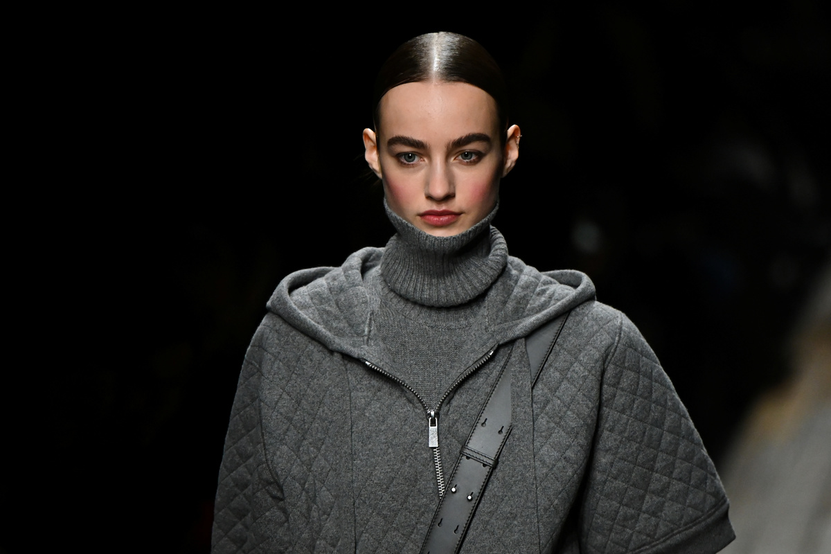 Earthy, autumnal tones were offset only by the occasional pop of red or hit of black and white, while turtlenecks were pulled high and widely flared coat sleeves ran long. High boots with low heels added to the laid-back yet elegant look.