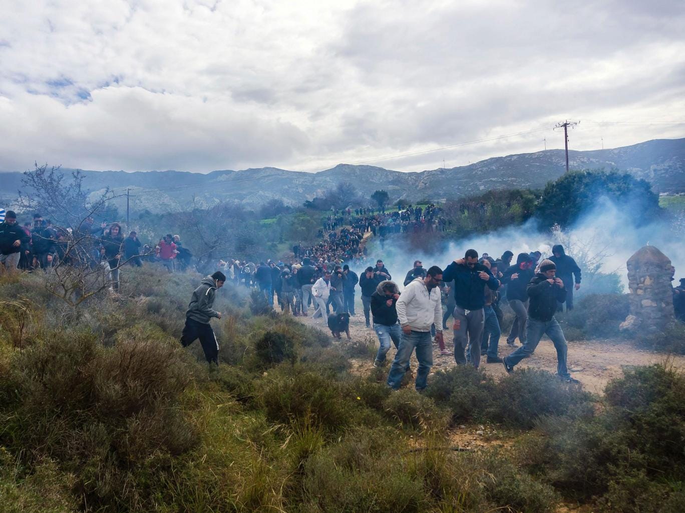 The rally was held near Pyli after the area on the island was identified by the Greek government as one of five new “hotspots” on its islands that will house and process the flood of refugees attempting to enter the EU by crossing the Aegean Sea from Turkey.