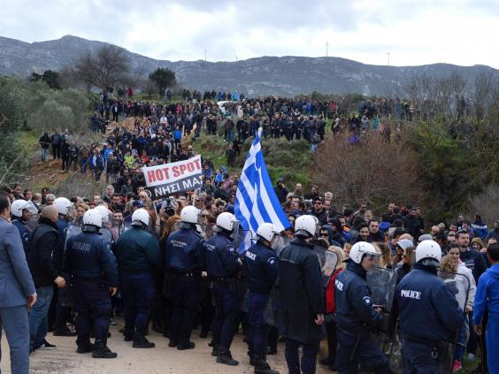 EPA reports more than 2,000 people took part in the protests, demanding the Greek government reconsiders its decision to build the centre on the island amid fears it will affect the community’s vital tourism industry.