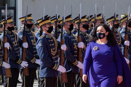 Osmani-Sadriu took office Tuesday in a ceremony with a guard of honor. Acting President Glauk Konjufca handed over the country’s constitution, avoiding a more formal ceremony due to the pandemic.