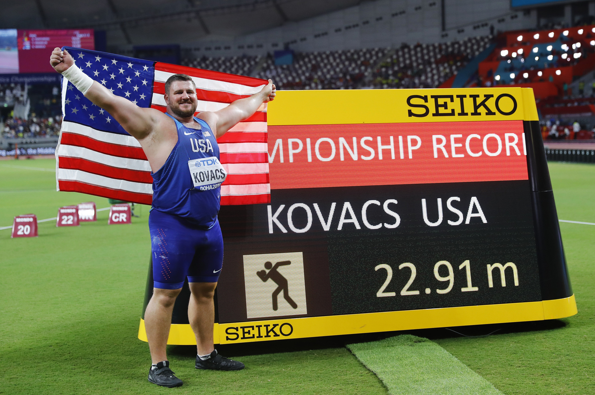 DOHA (Reuters) - American Joe Kovacs produced the third best shot put of all-time, 22.91 metres, to snatch the world championship gold medal from New Zealand's Tomas Walsh with his final throw on Saturday.