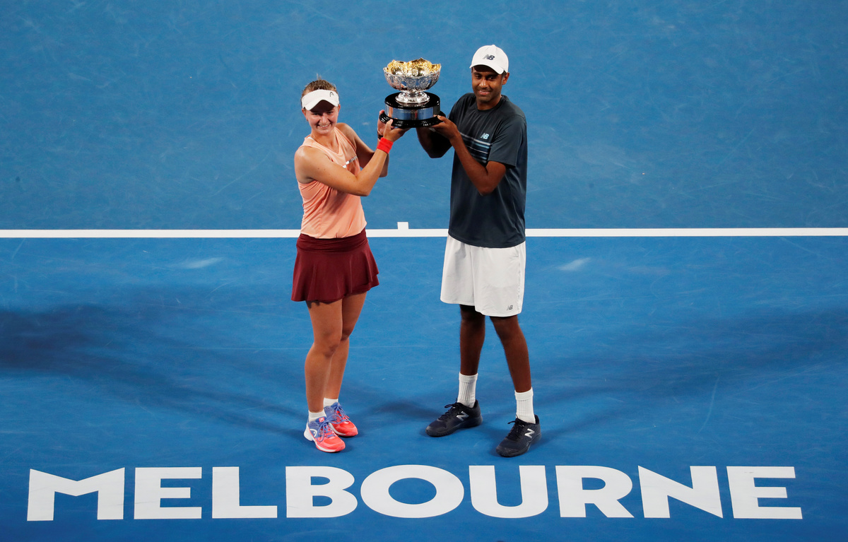 It was the first taste of Grand Slam success for American Ram while Krejcikova, who won two women's doubles majors with fellow Czech Katerina Siniakova last year, claimed her first mixed doubles Slam trophy.