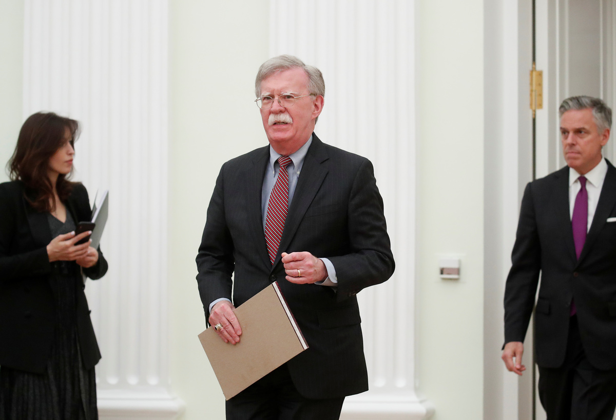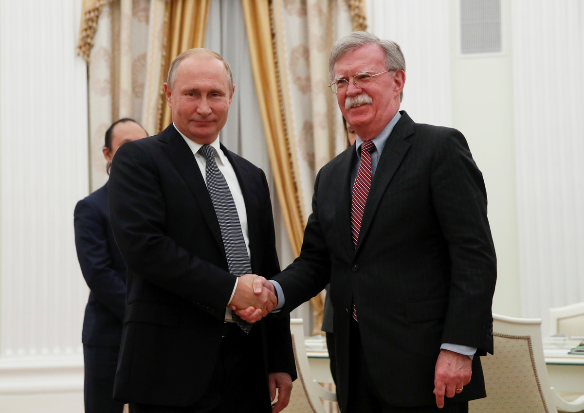 MOSCOW (Reuters) - Washington will press ahead with a plan to quit a landmark nuclear arms control pact despite objections from Russia and some European countries, senior U.S. official John Bolton said on Tuesday, after meeting Russian President Vladimir Putin.